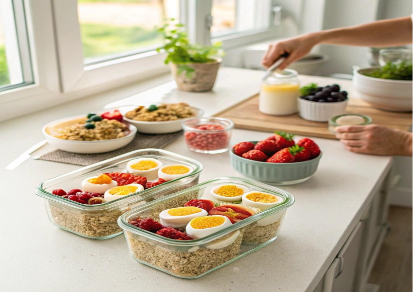 - Meal Prep on Weekends – Slice fruits, boil eggs, or prepare oats in bulk.