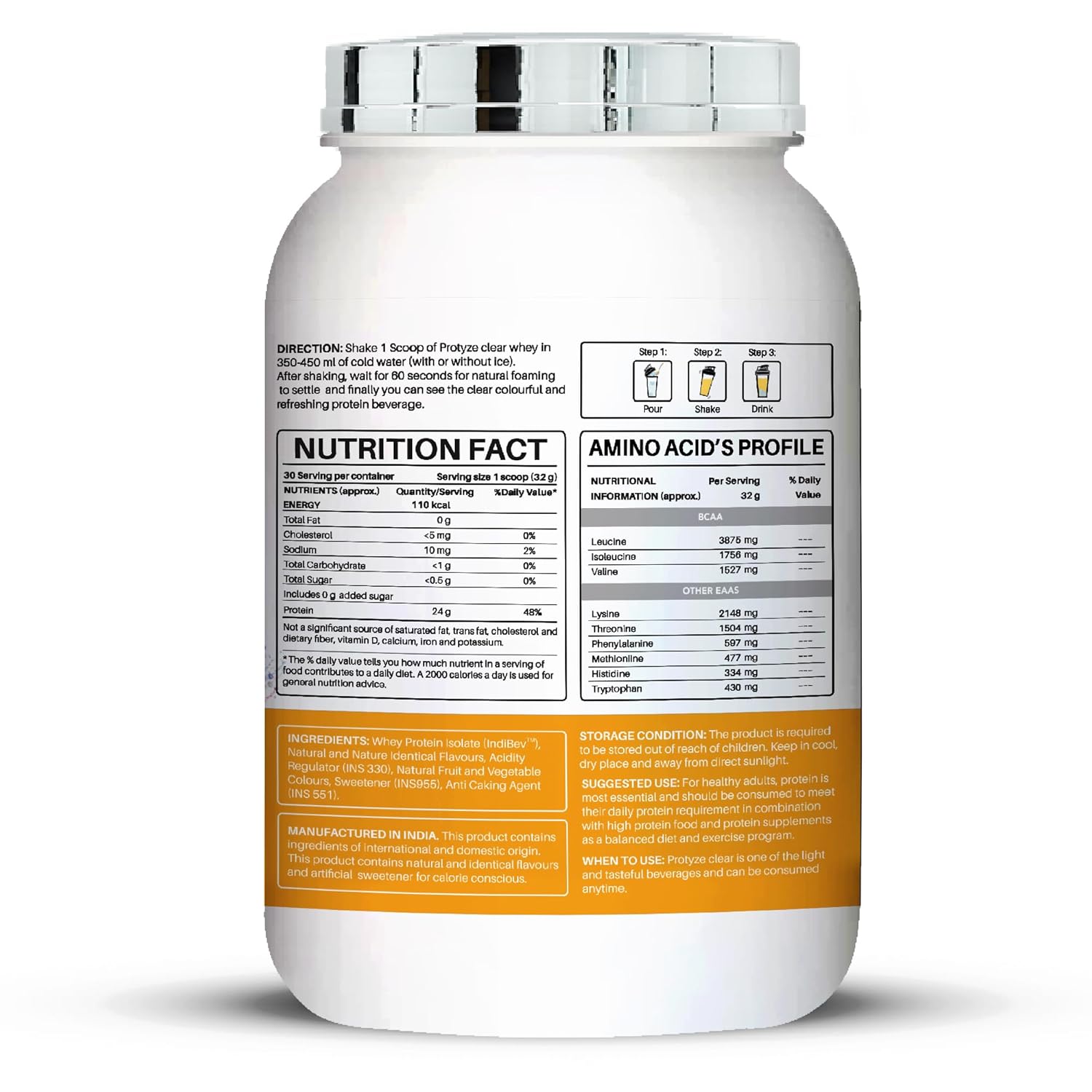 India’s First Patented Clear Whey Formula: Protyze anytime clear whey isolate is designed to be absorbed faster, so you can recover quicker and see better results. Fully certified for quality and safety with GMP, ISO 9001:2015, FSSC:22000, and HACCP—so you can trust every scoop. Award-winning quality—recognized for both taste and performance. Our raw material is custom manufactured in USA and Europe maintaining high standards with Halal, Kosher.
