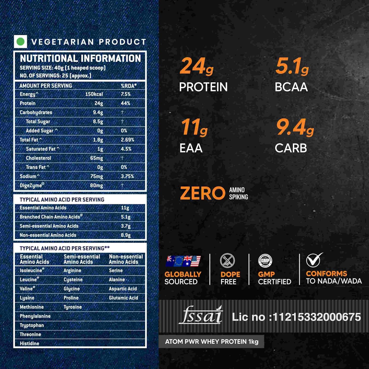 ENHANCES MUSCLE GAINS: ATOM PWR Whey can help you make the most of your efforts in the gym by boosting muscle gains, muscle strength and reducing muscle loss. Carbs in the supplement help to enhance the uptake of amino acids and effectively utilize the protein for improved muscle gains.