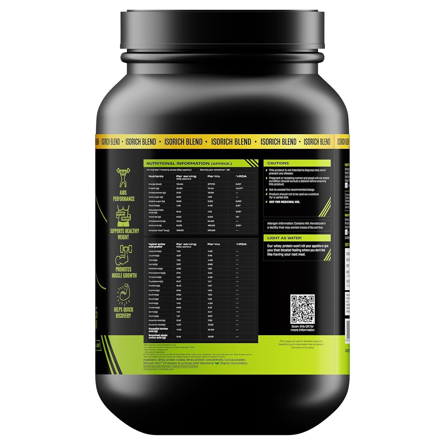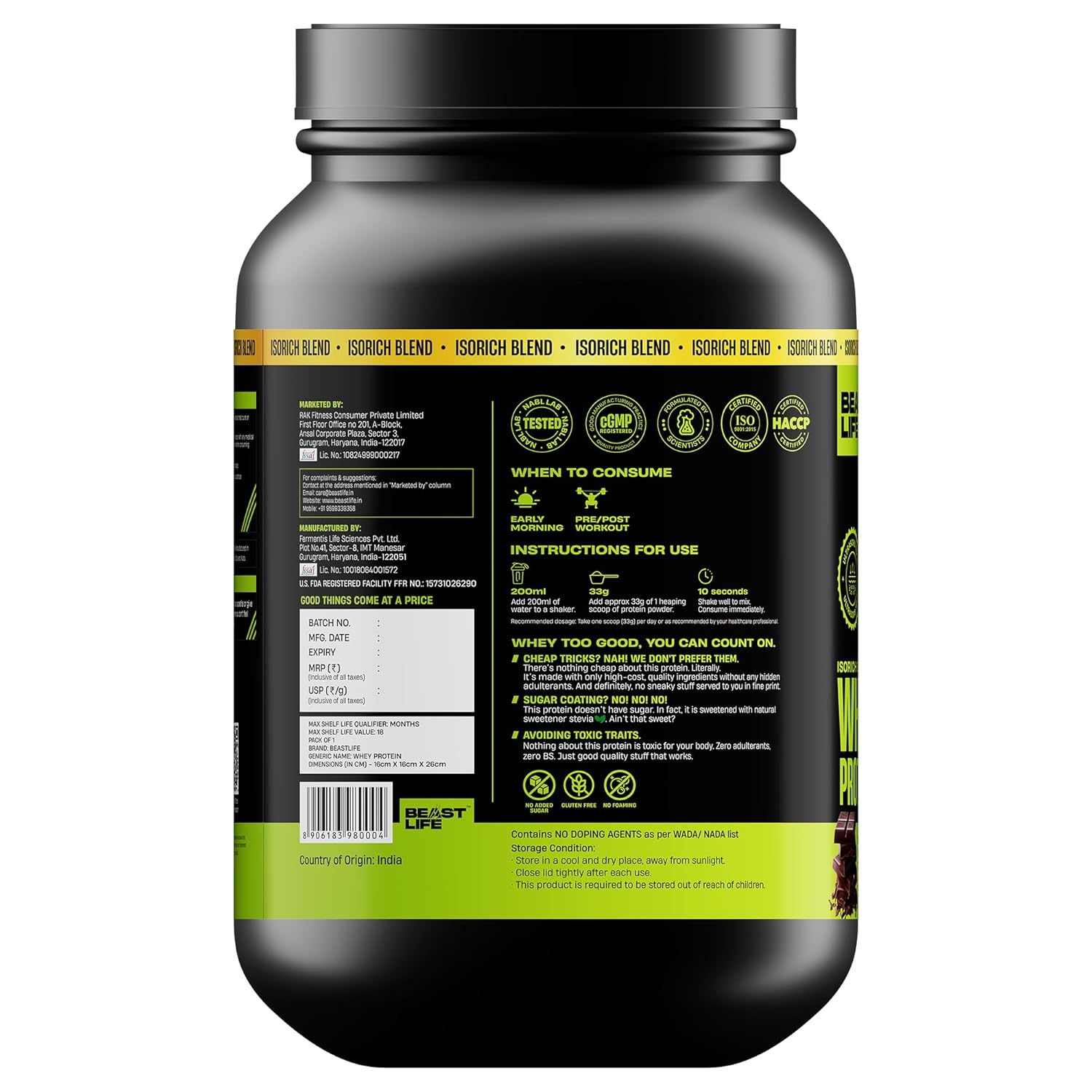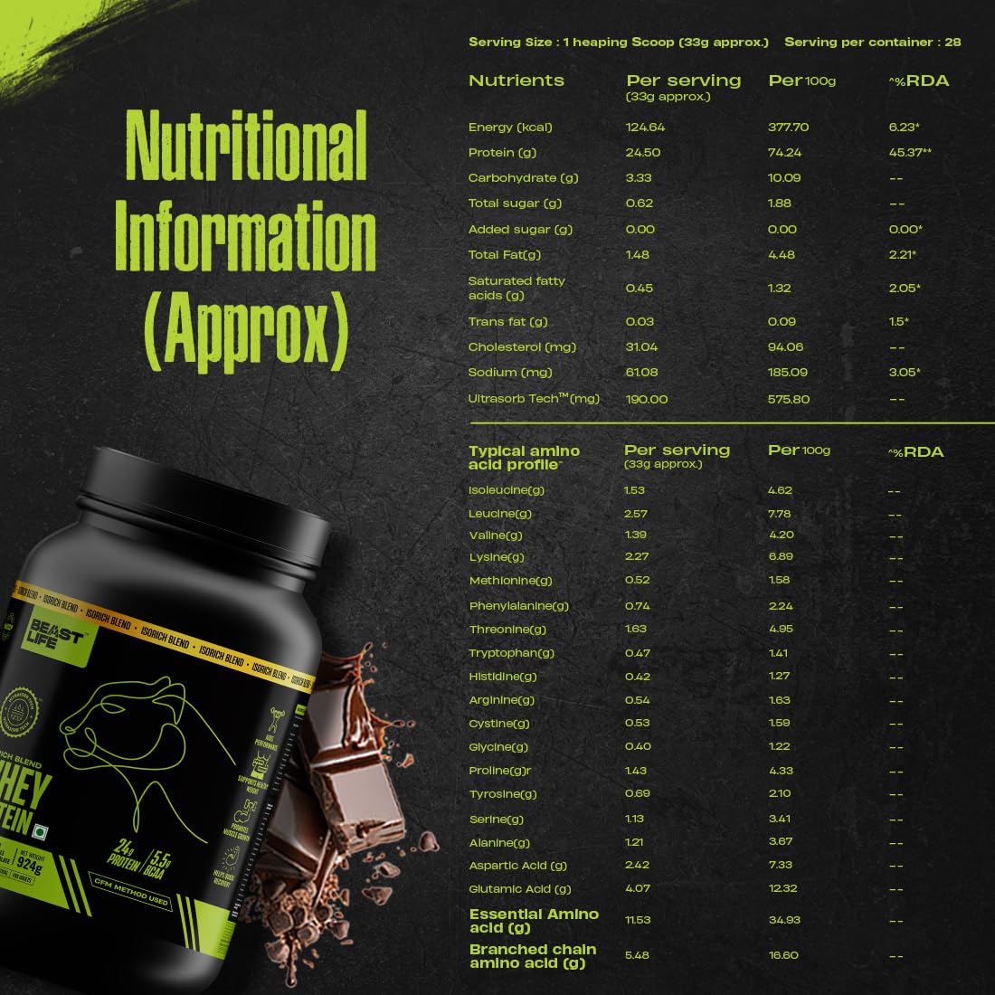 Generic Name : BeastLife Whey Protein Powder With Ultrasorb Tech,Isorich Blend,24G Protein,5.5G Bcaa,Sports Nutrition|High Absorbtion Fuels Muscle|Speed Recovery For Men & Women, 924g Rich Double Chocolate