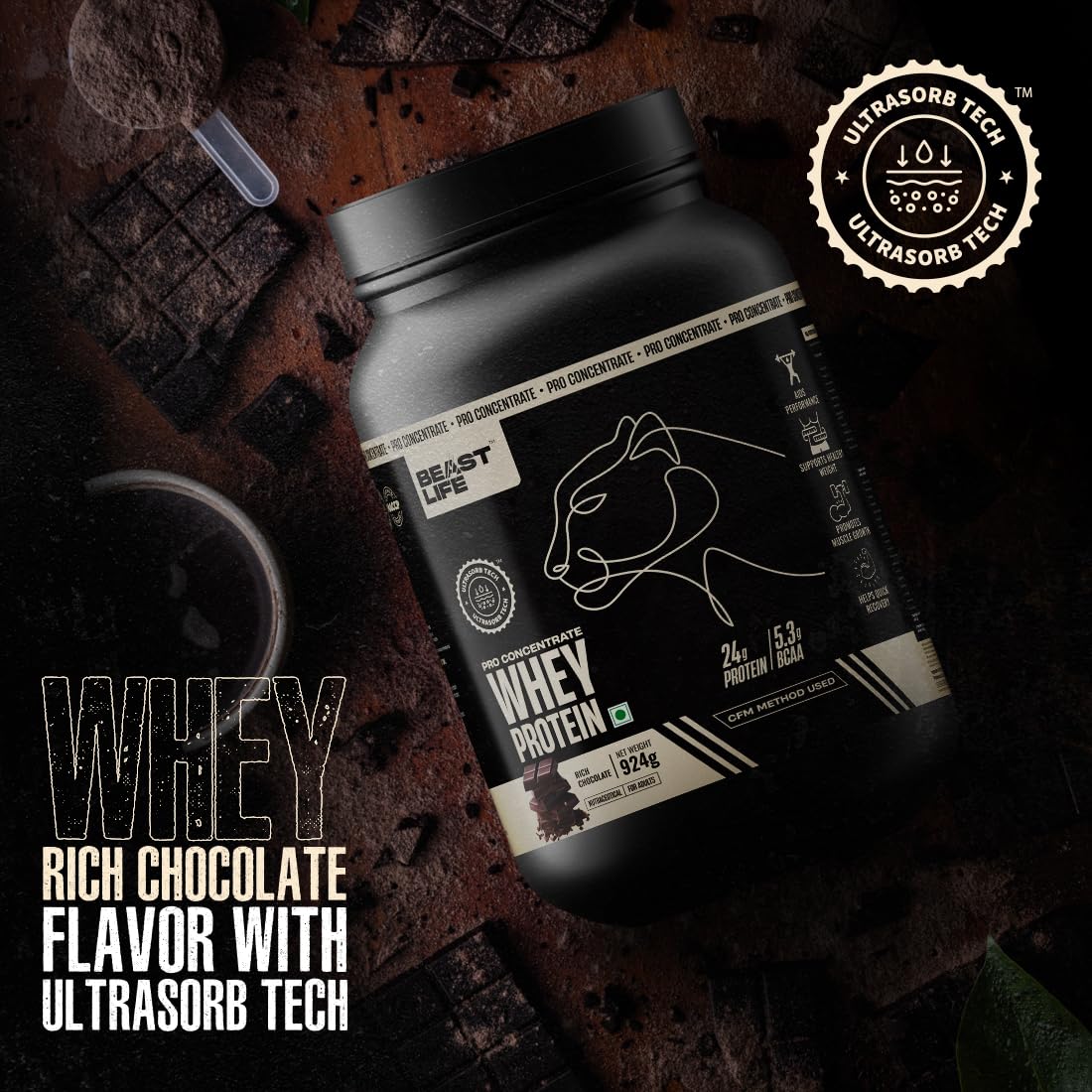 Generic Name : BeastLife Whey Protein Powder Rich Chocolate Flavour With Ultrasorb Tech,24G Protein,5.3G Bcaa,Sports Nutrition|High Absorbtion Fuels Muscle|Speed Recovery For Men & Women 924g Rich Chocolate