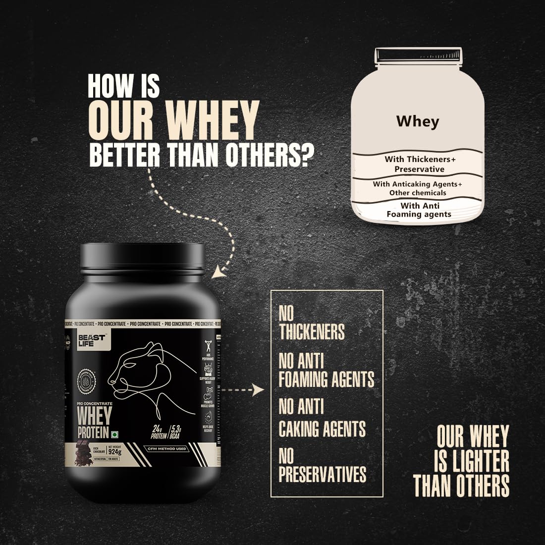 No toxic traits: Low Carb Whey Protein with No Adulterants- just gains!