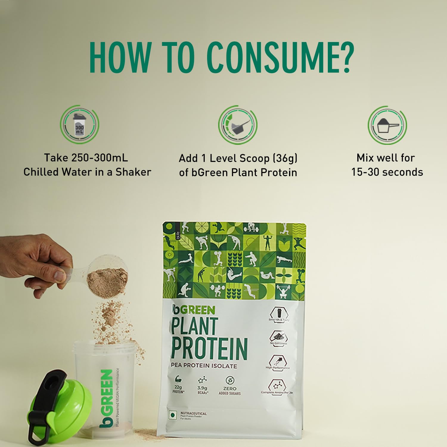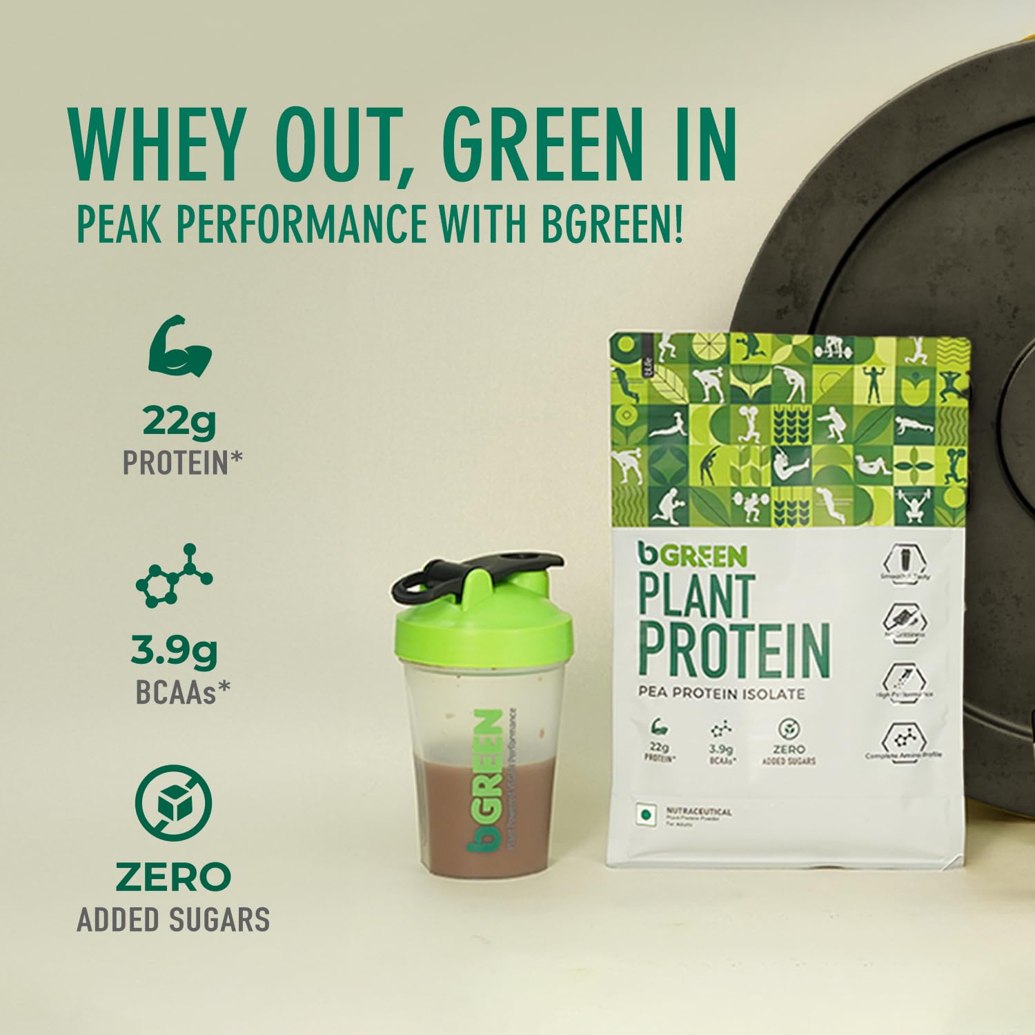 PERFORMANCE POWERHOUSE: Each 22.32g scoop of bGREEN Plant Protein is packed with the essential building blocks to forge strong, lean muscle. Watch your physique transform as you reach your fitness peak