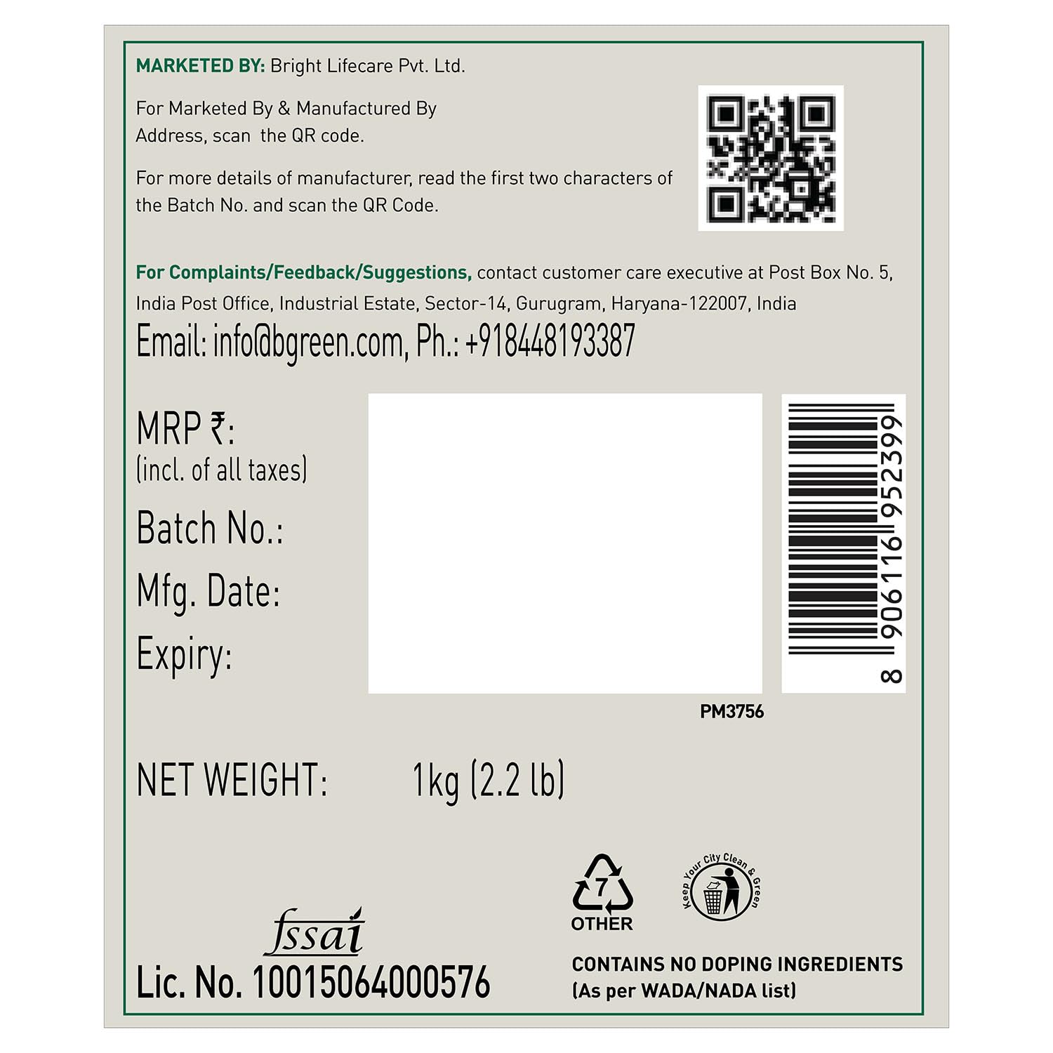 Net Quantity : 1000.0 Grams