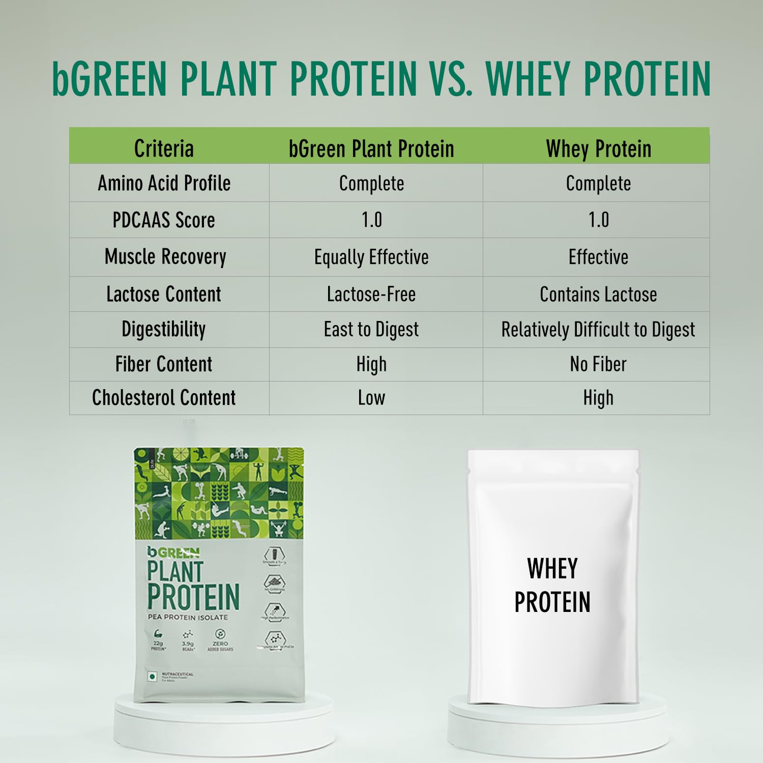 PERFECT FOR YOUR HEART-HEALTHY LIFESTYLE: bGREEN Plant Protein Powder is free from added sugars and boasts a superior low-cholesterol profile. It allows you to optimize your workouts while keeping your heart happy and healthy