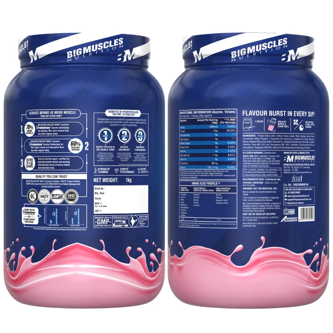 ![Bigmuscles Nutrition Nitra Isolate [1kg, Strawberry] | 32g Protein | 10g EAA | Whey Protein with ProHydrolase Enzyme Tech. For Faster Absorption | Improved Strength, Faster Recovery & Muscle Building - Image 8](https://titanfit.co.in/wp-content/uploads/2026/02/71cBEZE4ARL._SL1100_.jpg)
