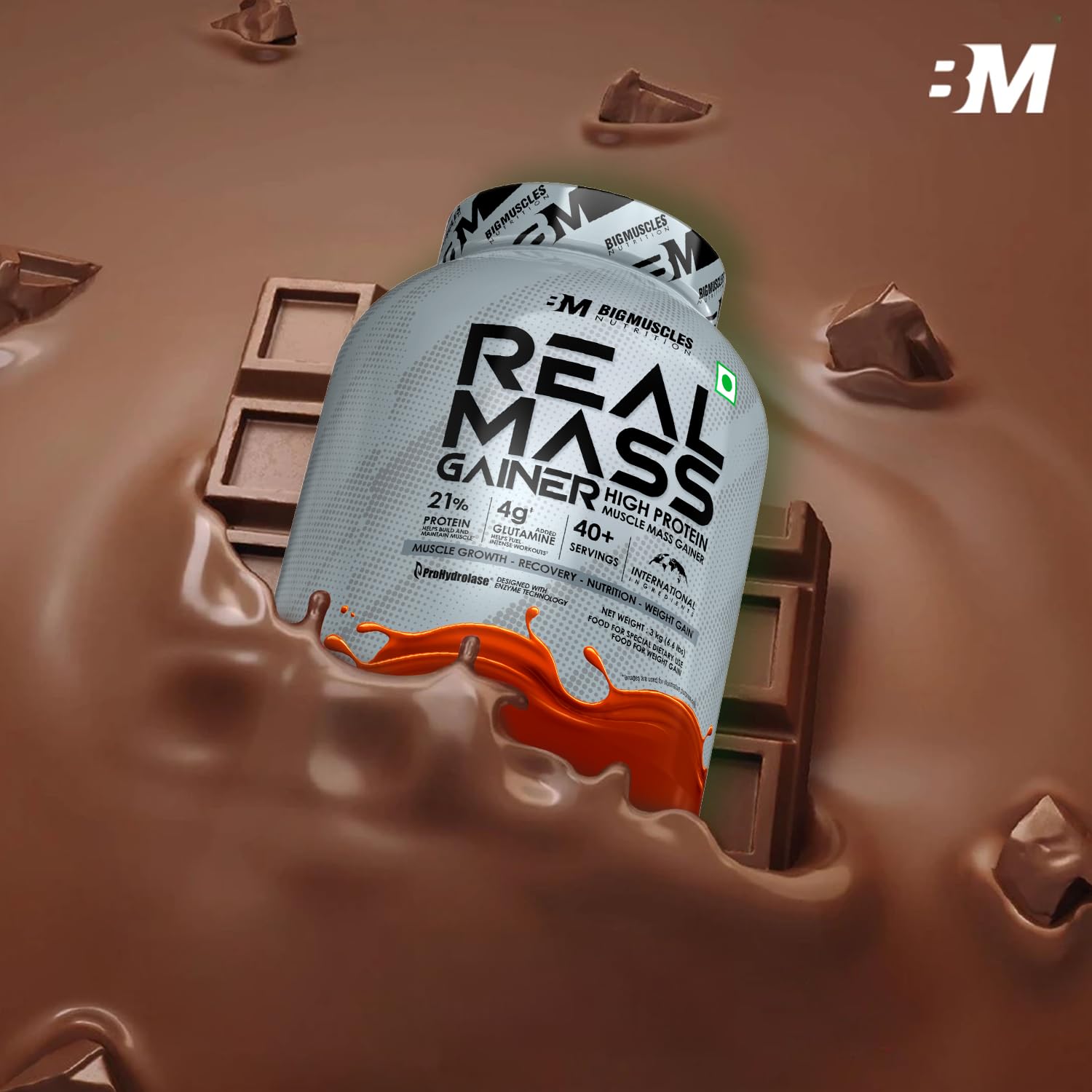 Power Up Your Workouts with Bigmuscles Nutrition Real Mass Gainer in Chocolate Flavor!