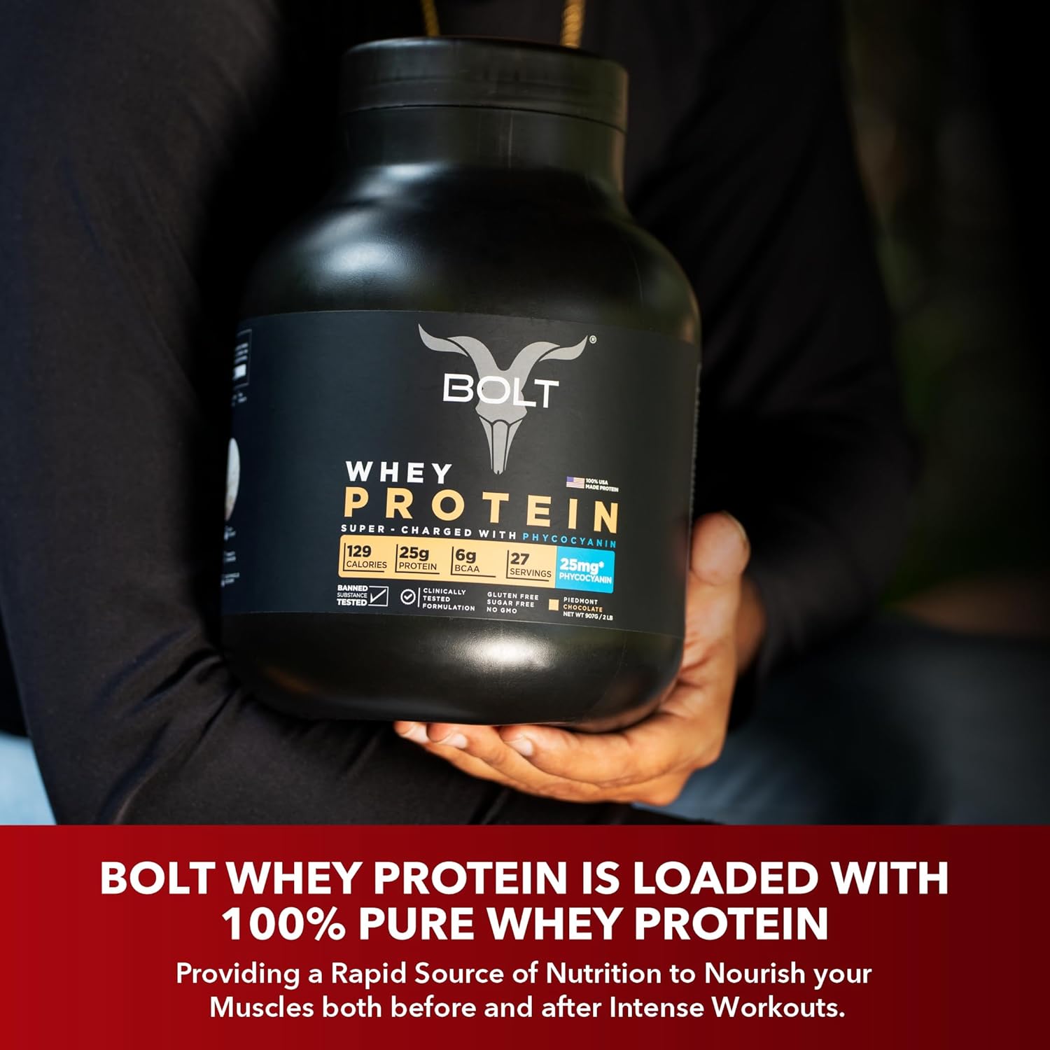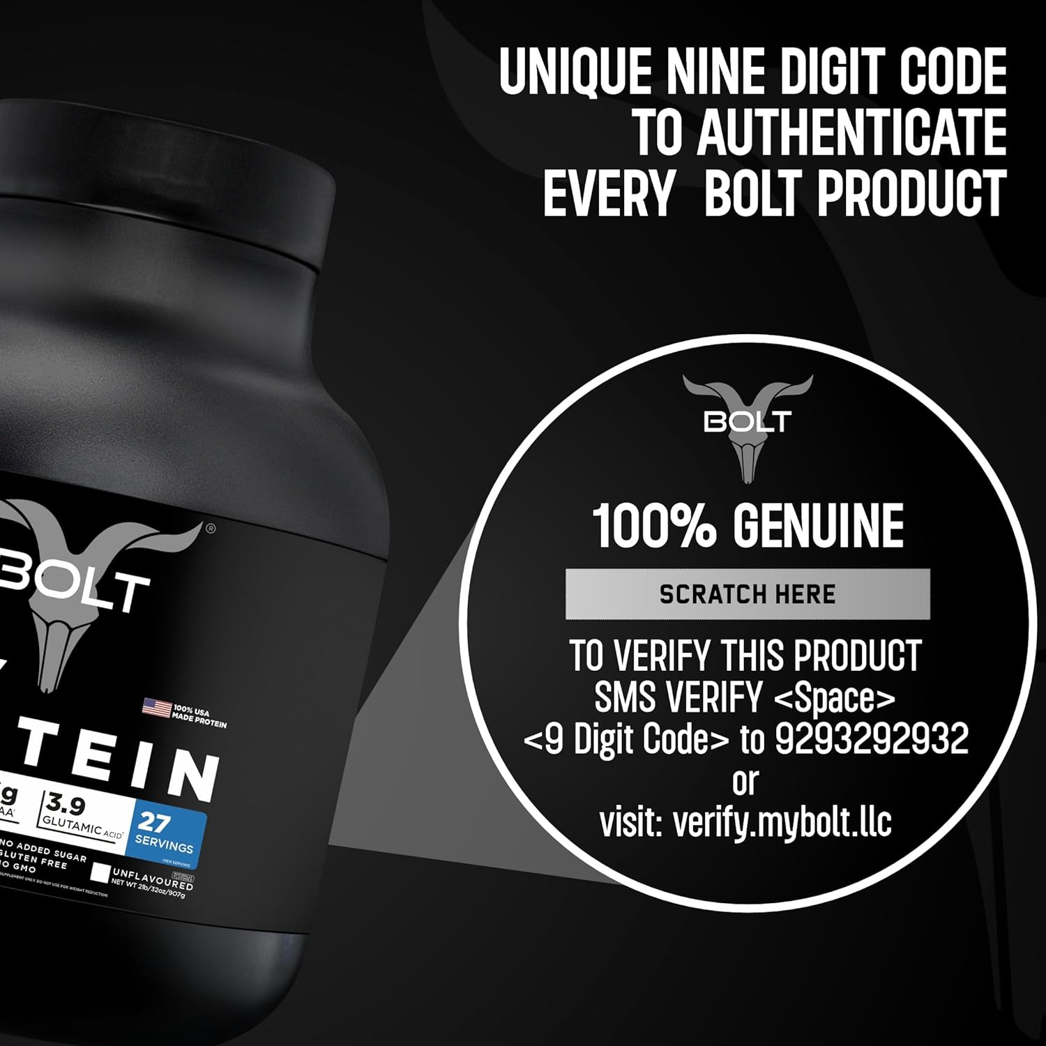 Bolt 100% Whey Protein Powder| 25g Protein Per Scoop, 6G BCAA |Unflavoured | 27 Servings | 2lb,907G| Muscle Recovery | Lean Muscle Support | Low Carb | Fast Absorption |Gluten-Free | Easy to Digest