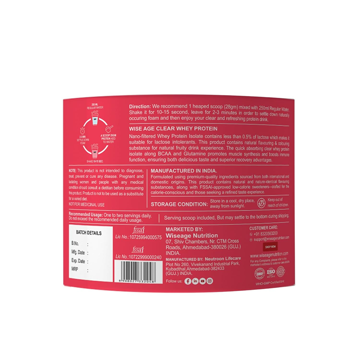 Packer : Wiseage Nutrition, +91 8320563200, support@wiseagenutrition.com