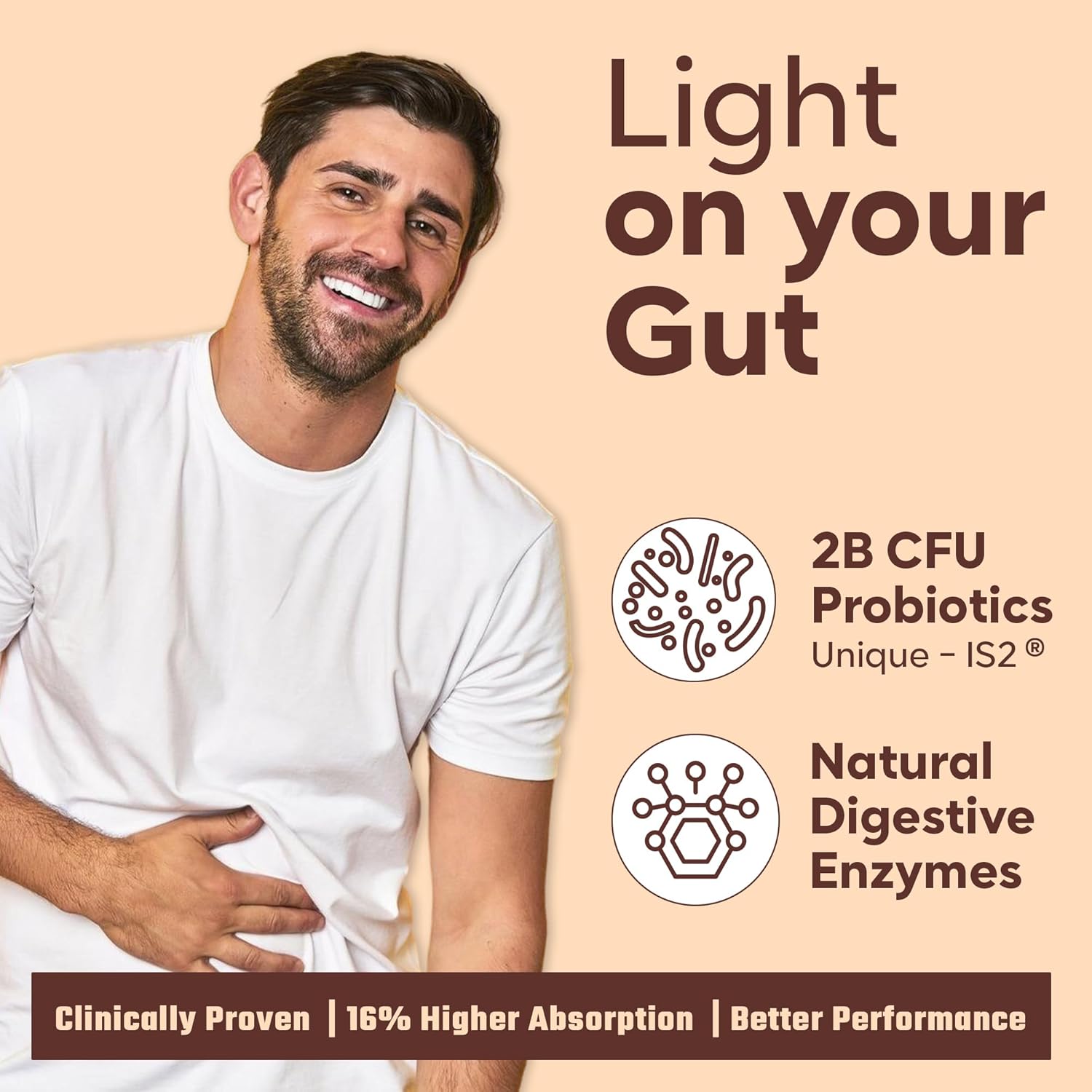 Enhanced Digestive Support: Contains 2 Billion CFU Probiotics (Bacillus coagulans-IS2) and digestive enzymes for better digestion and nutrient absorption.