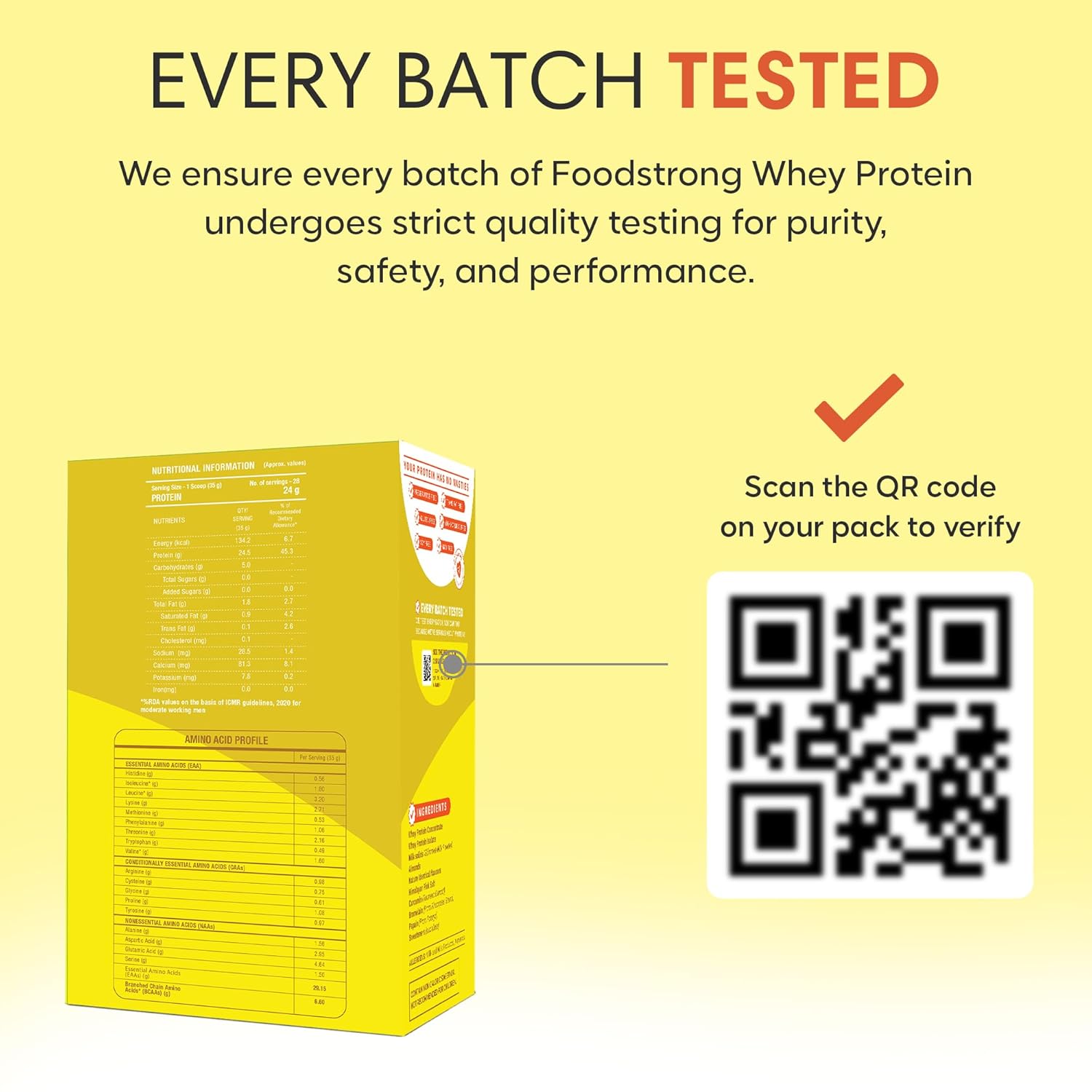 High Protein, Low Fat, and No Nasties: Each scoop gives you 24g protein, 134 kcal, just 1.8g Fat, 5g of Carbs, 6.6g BCAA. Our whey proteins are free of all nasties – No Soy, No Gluten, No GMO, No Preservatives, No Trans Fat & No Antibiotics.