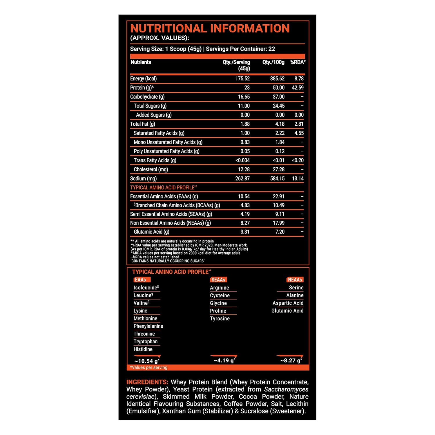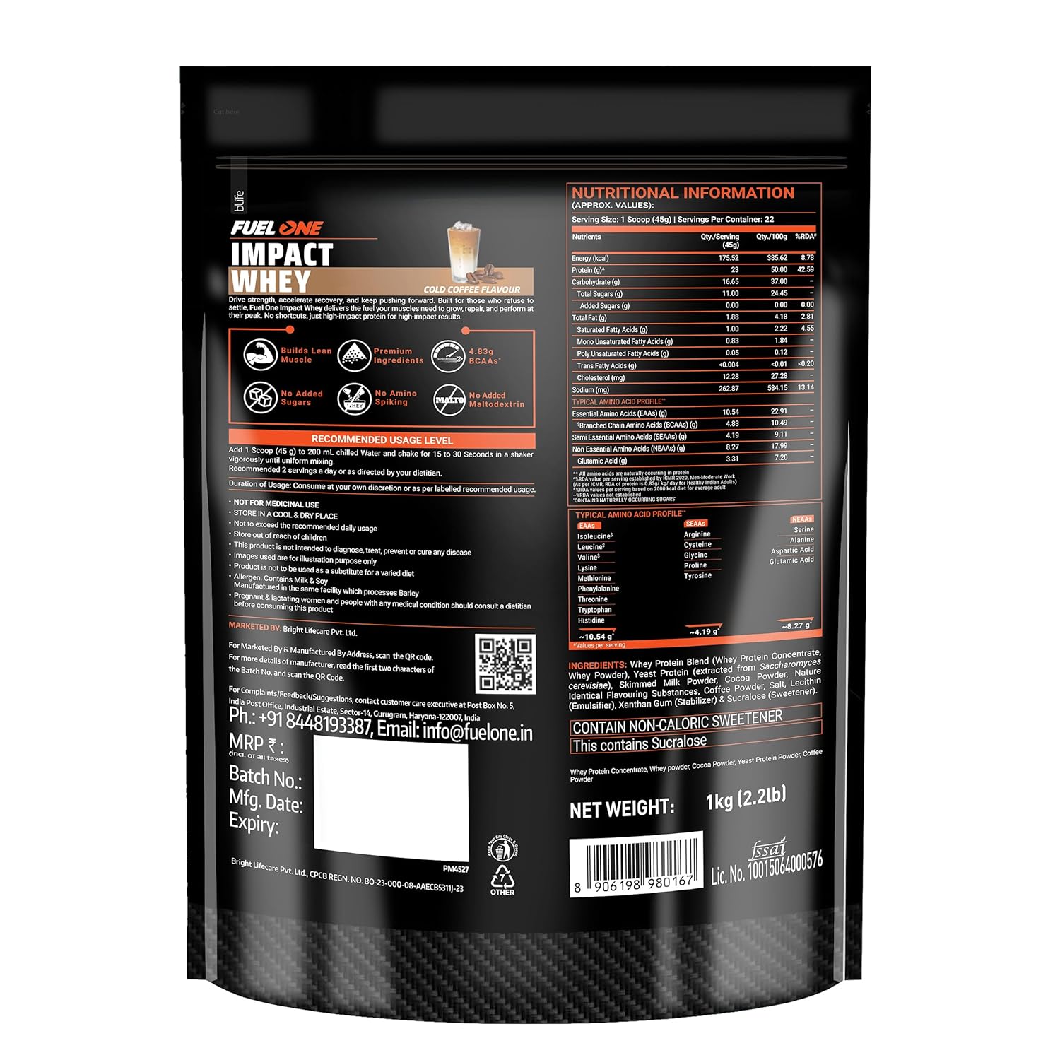 RICH AMINO ACID PROFILE: FuelOne Impact Whey Protein is packed with 4.83g BCAAs and 10.54g EAAs to support muscle repair, reduce fatigue, and improve performance.