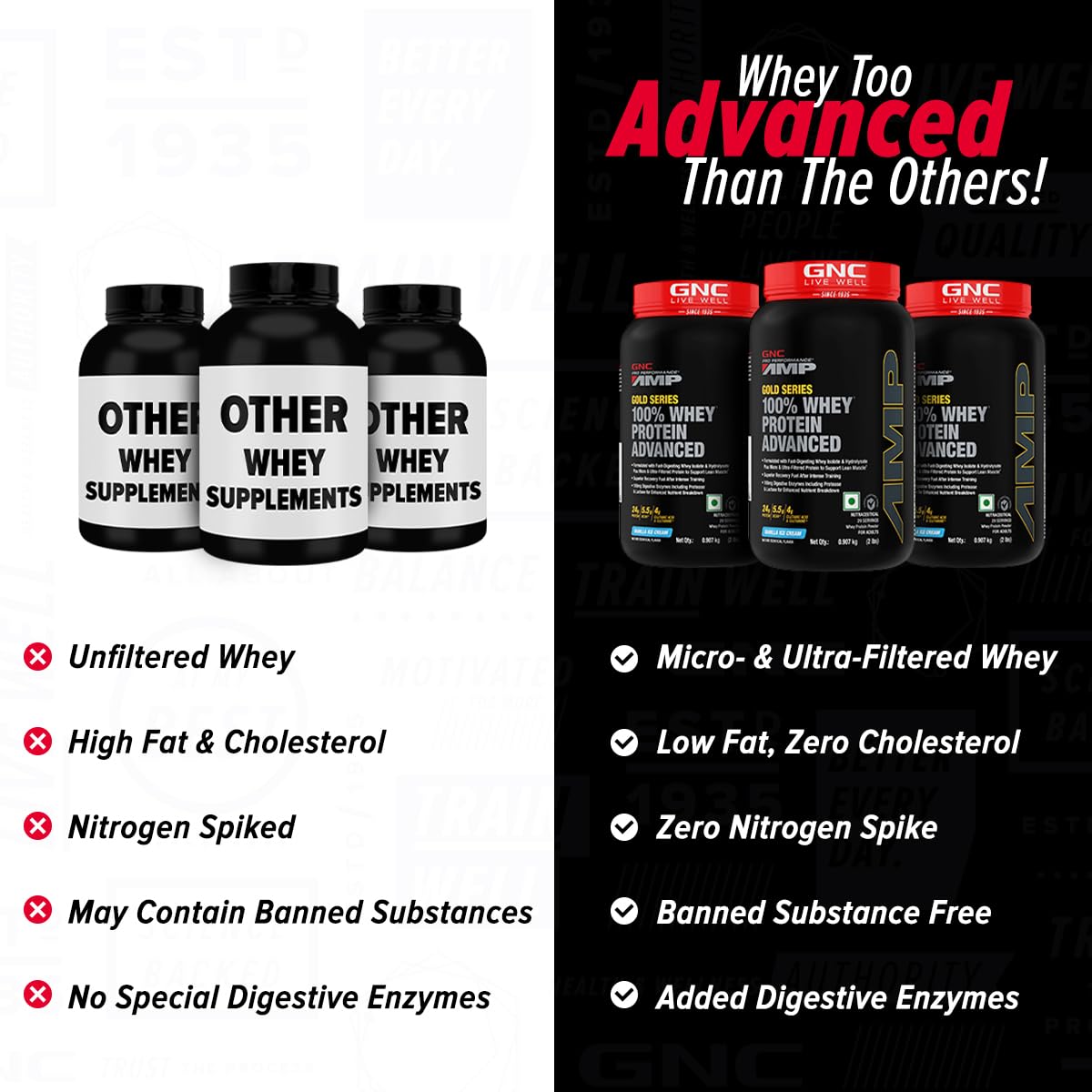 ULTRA-FILTERED WHEY: GNC AMP Gold Advanced protein powder (29 Servings) features a 100% pure, ultra-filtered protein blend with fast-digesting whey protein isolate, whey protein concentrate, and whey protein hydrolysate to level up your exercise performance. Its ultra-filtered form enables easy absorption and improved metabolism.