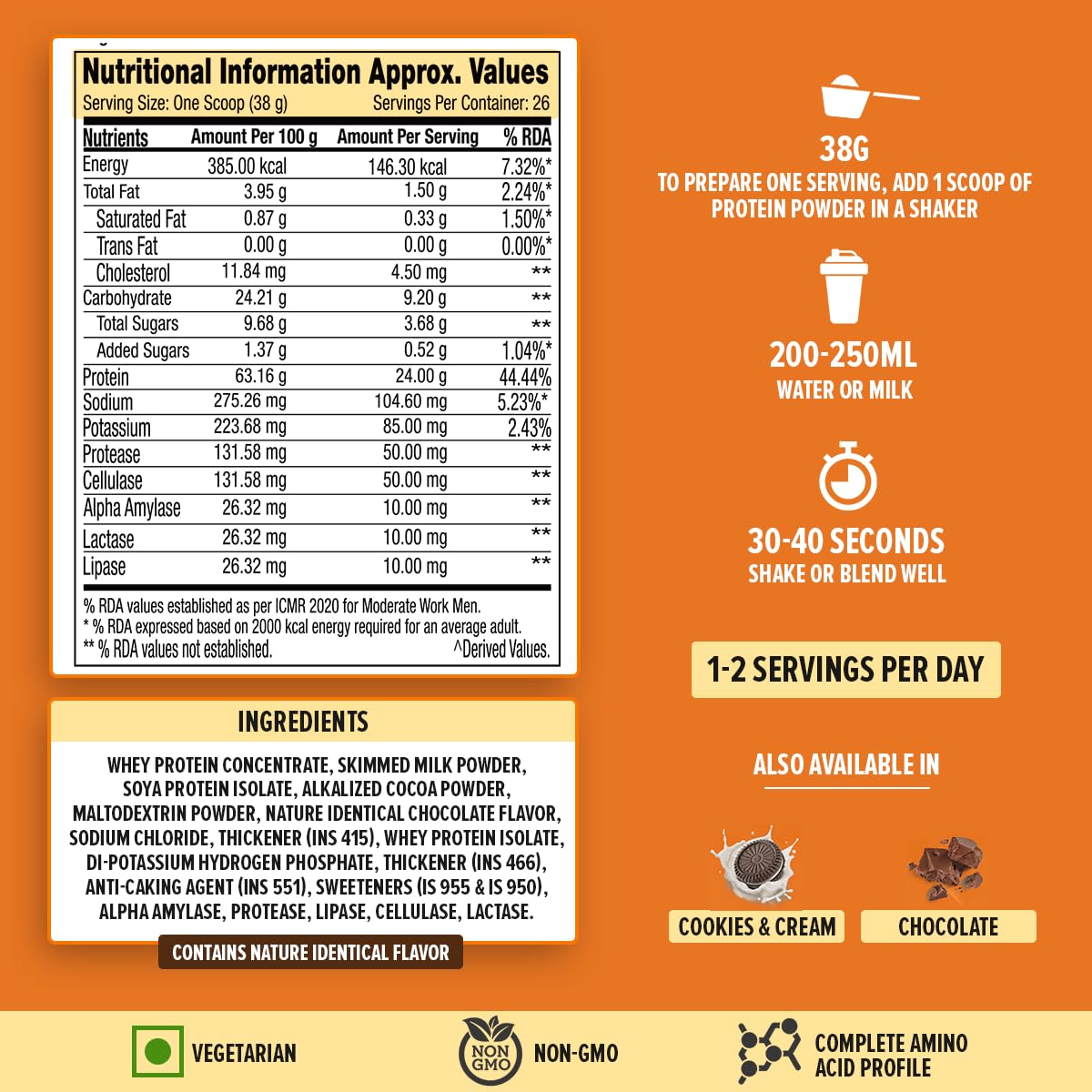 With Enzymes for Easy Digestion: This protein powder contains digestive enzymes, facilitating easy digestion and absorption so you can enjoy the benefits of protein supplementation without any digestive discomfort, ensuring no bloating & gas. Including enzymes enhances nutrient utilization, ensuring that your body can efficiently absorb the protein and other essential nutrients, maximizing their benefits for muscle growth and overall health.