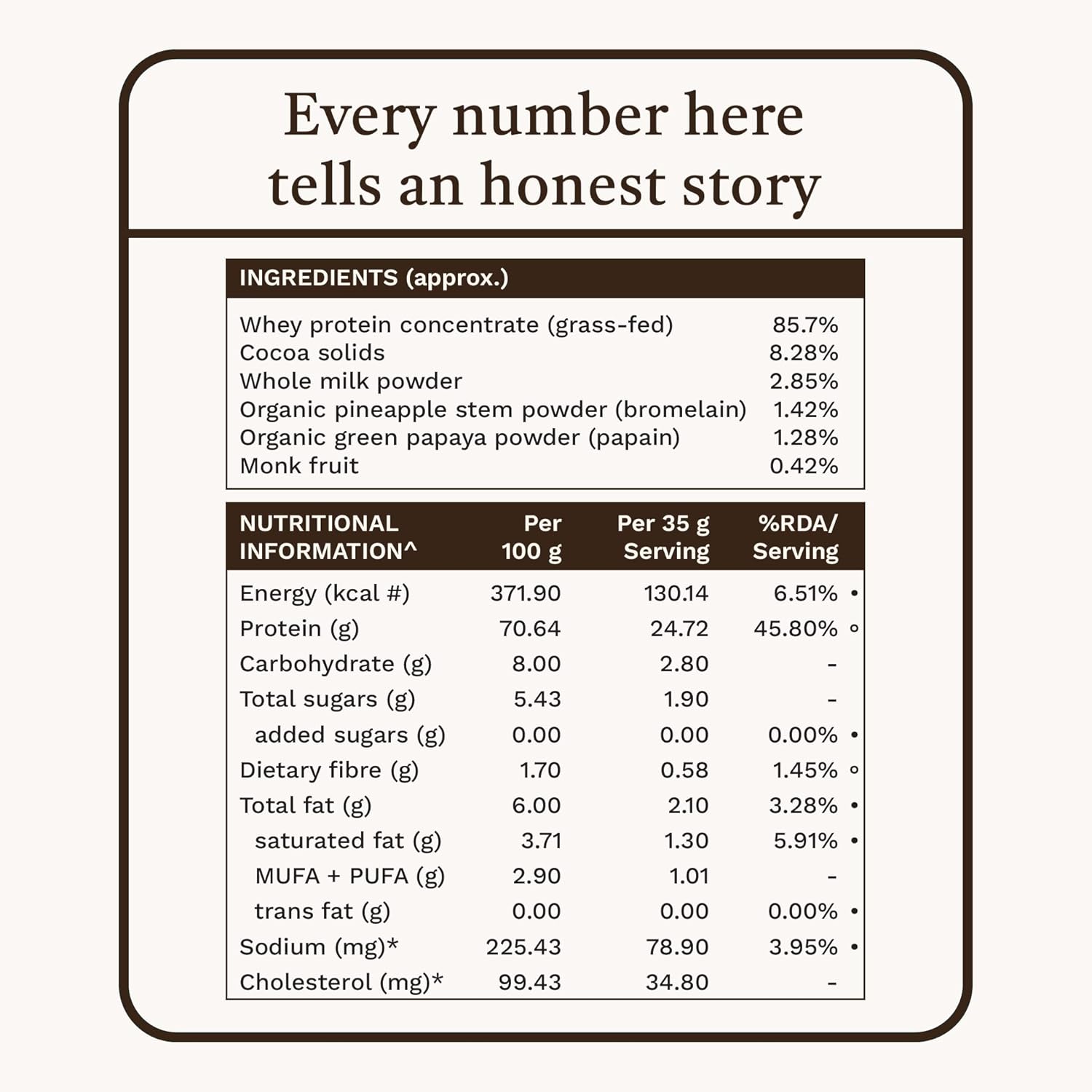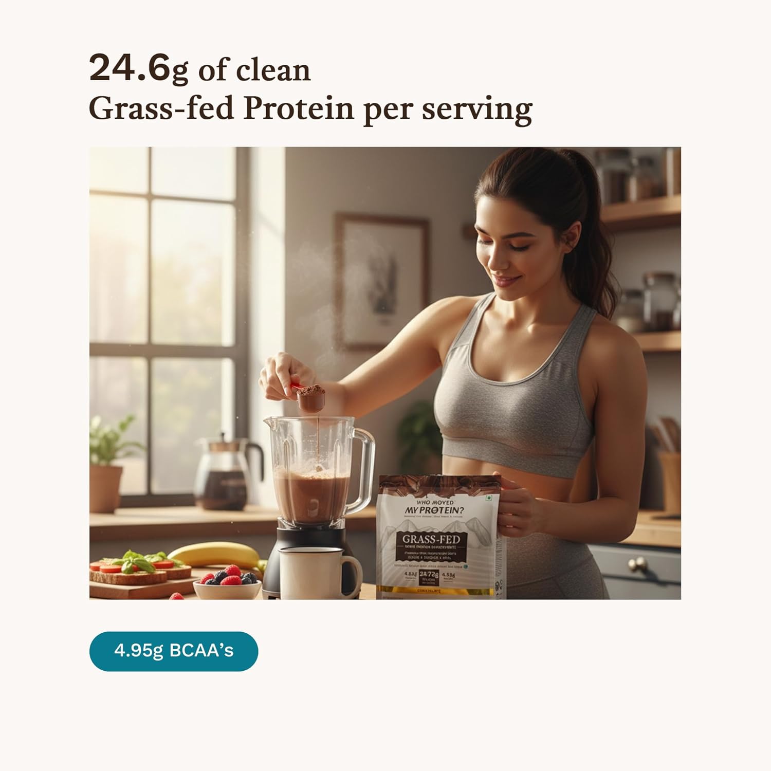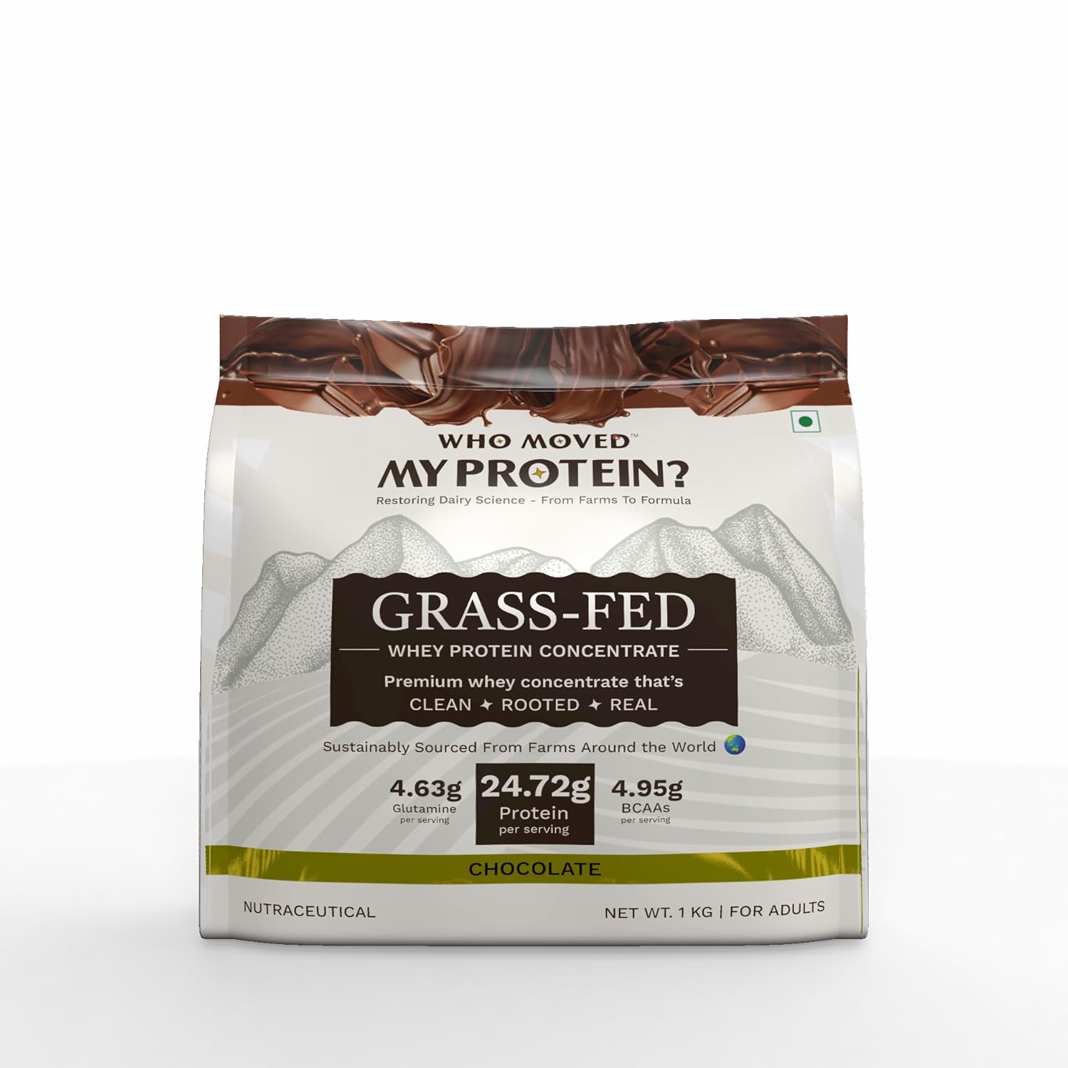 Meet our Grass-Fed Whey Protein Concentrate Chocolate. Crafted for those who want strength without compromise. Made from clean grass-fed whey and real cocoa for energy that feels natural, focused, and alive. From Farms to Formula Your protein should be simple, clean, and uncompromised. That’s why we went back to the roots. Grass-fed cows, honest farms, and science-backed nutrition. Who Moved My Protein? Whey Concentrate is packed with high-quality protein, naturally occurring BCAAs to fuel muscle recovery, strength, and everyday wellness. No shortcuts. No artificial additives. Just real protein the way it should be.