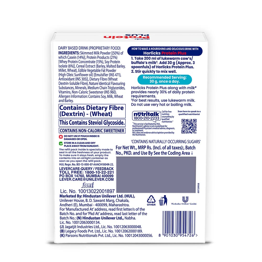 Horlicks Protein Plus is a nourishing beverage to be consumed as a part of regular and varied diet.