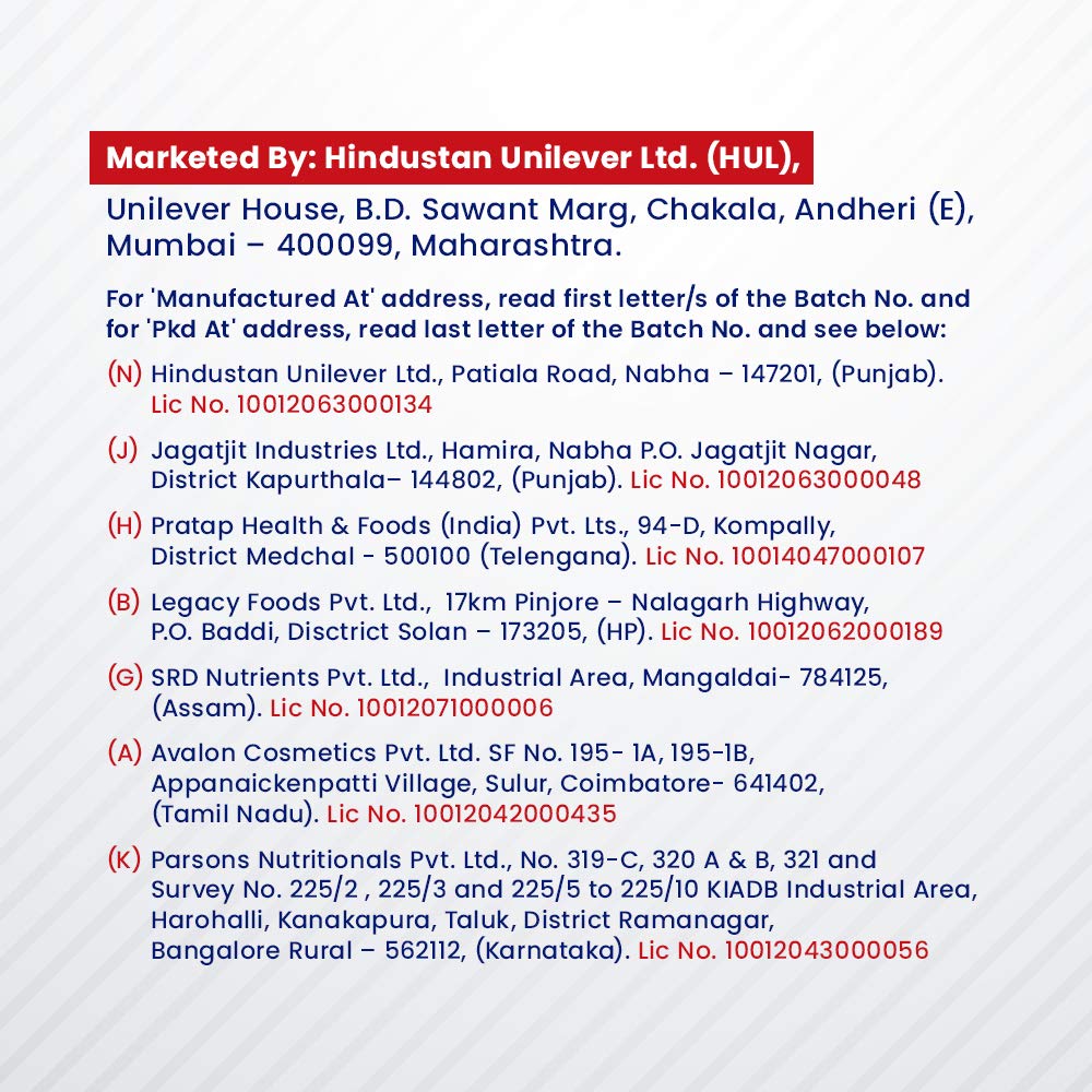 Importer : Hindustan Unilever Ltd|| Unilever House|| B D Sawant Marg|| Chakala Andheri East – 400099