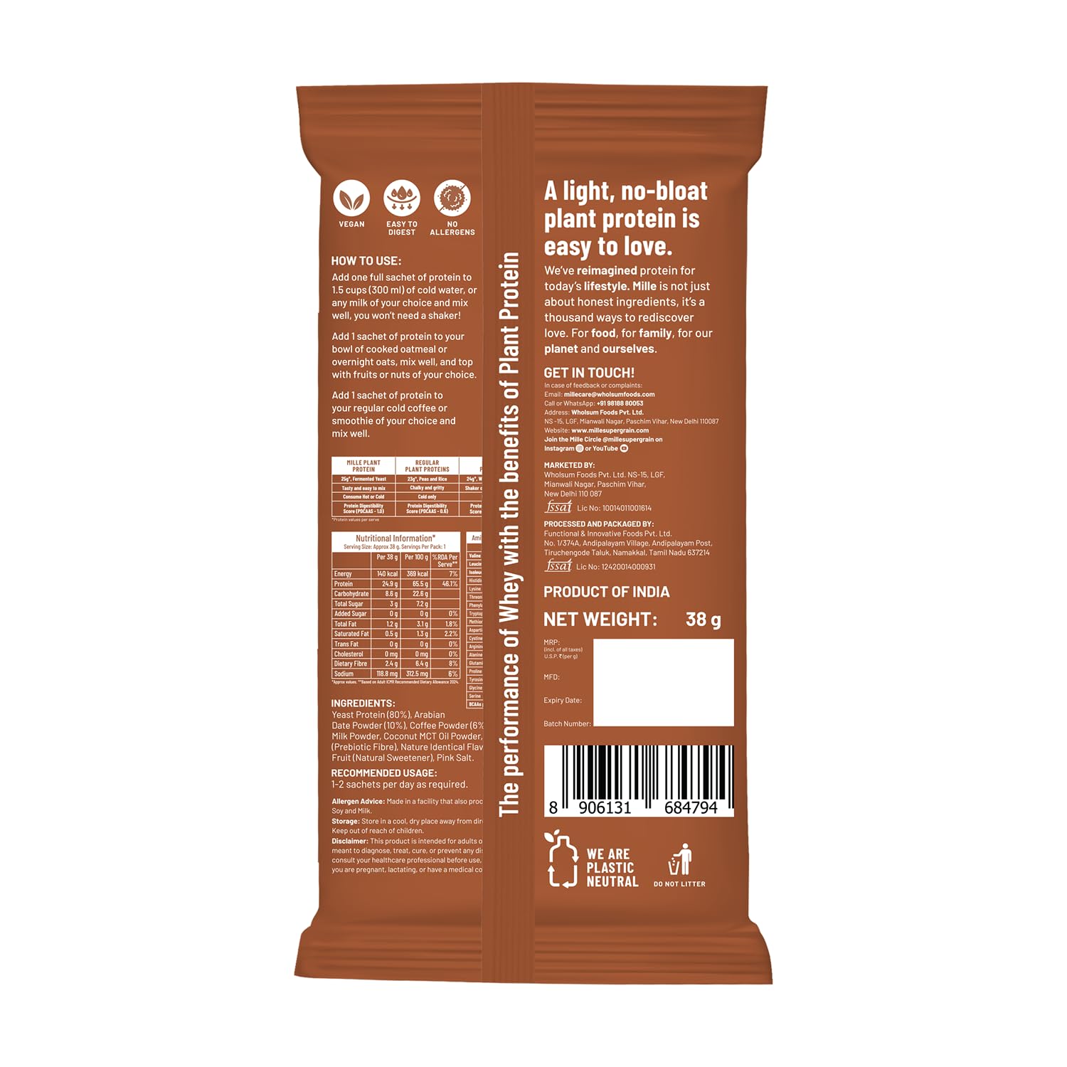 Manufacturer : Functional & Innovative Foods Pvt. Ltd., 1/374-A, Andipalayam Village, Andipalayam Post