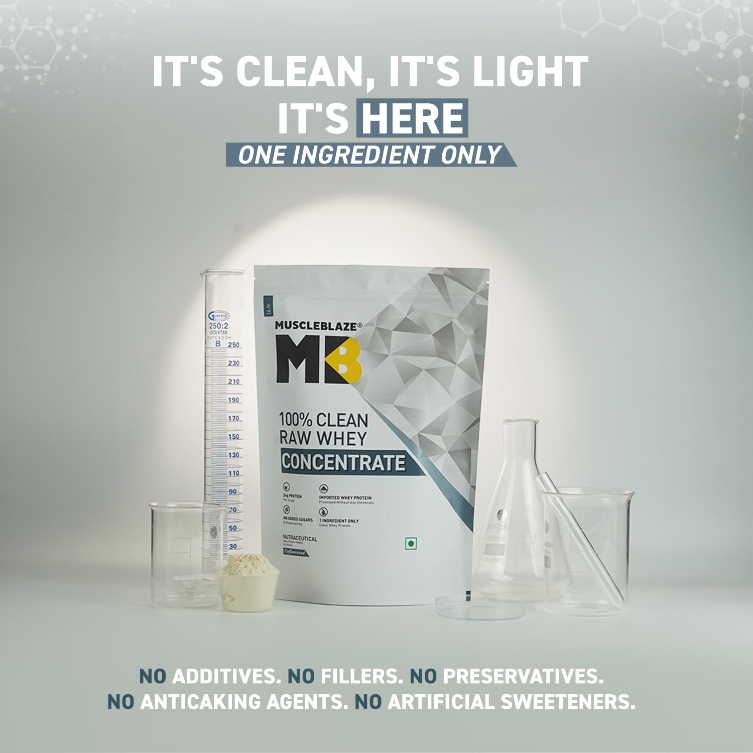 WHEY THAT REDEFINES PURITY: MuscleBlaze 100% Clean Raw Whey Concentrate is a muscle-making supplement that boosts gains by offering you the purest and extremely potent form of protein. Sourced from the best quality milk and devoid of any additives, every scoop of this whey elevates your protein intake by 24 g and preserves all the essential nutrients