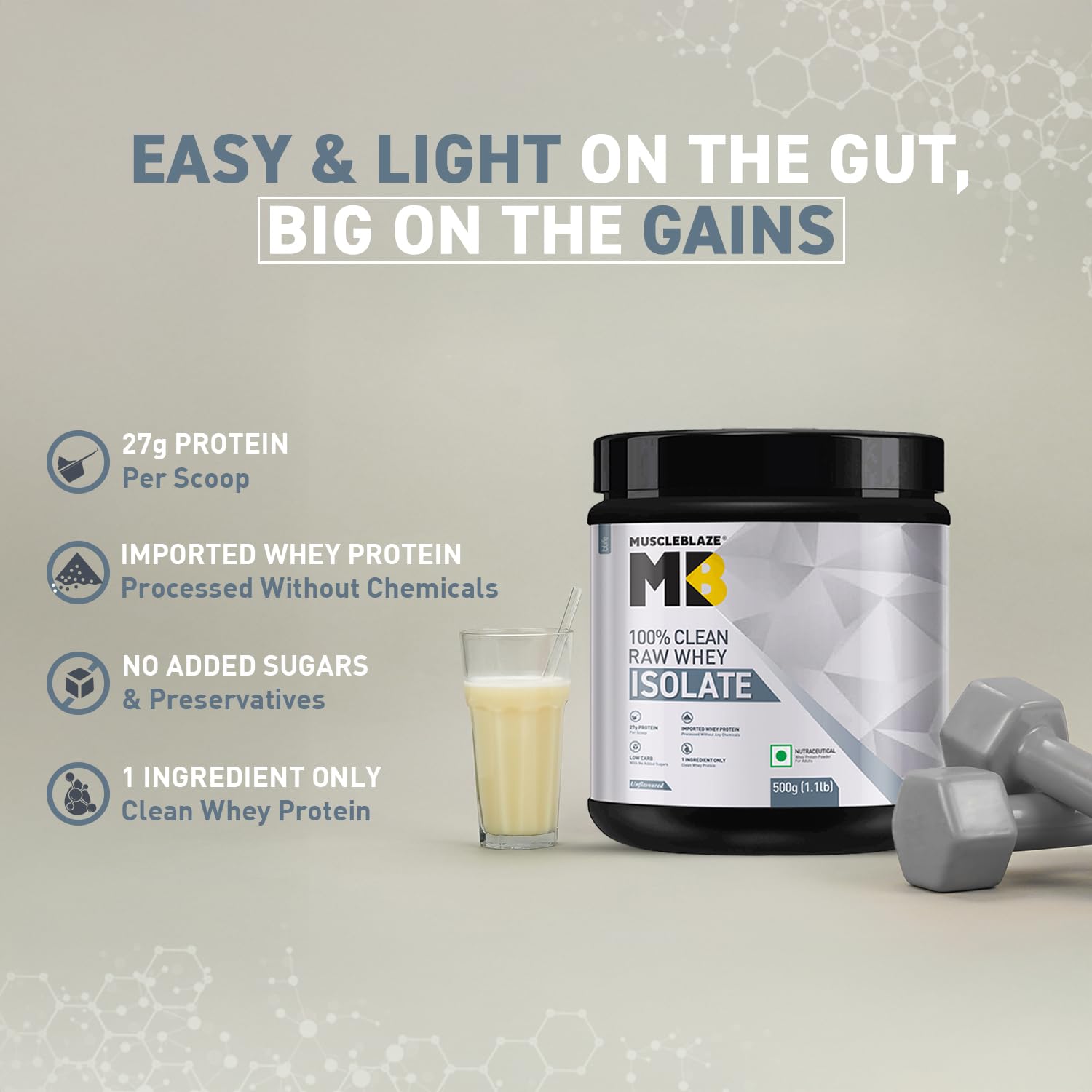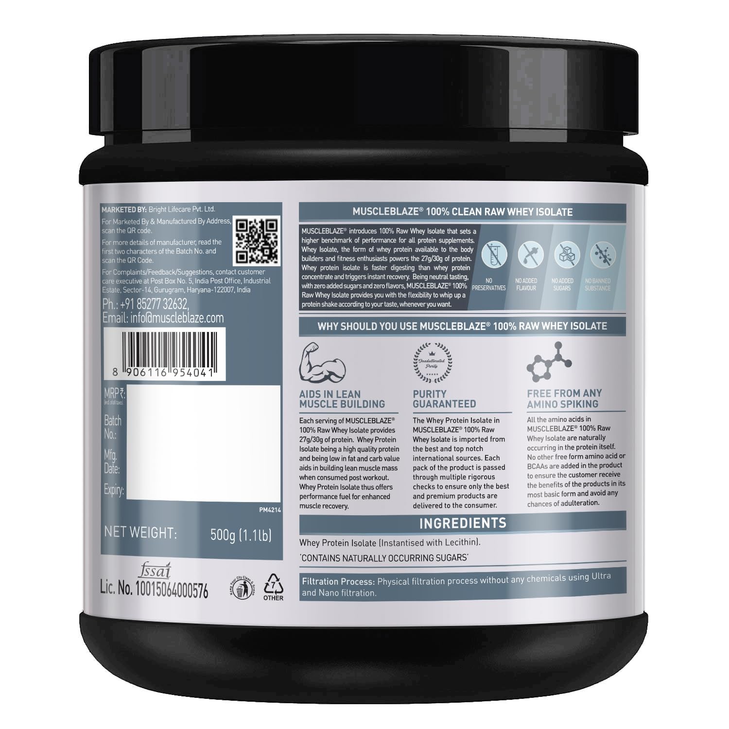 Pure Whey Protein Isolate: MB 100% Clean Raw Whey Isolate is made from a single ingredient—pure whey protein isolate. It delivers a high-protein, low-carb solution tailored for those who prioritize effective muscle recovery and lean muscle growth without unnecessary additives or fillers.