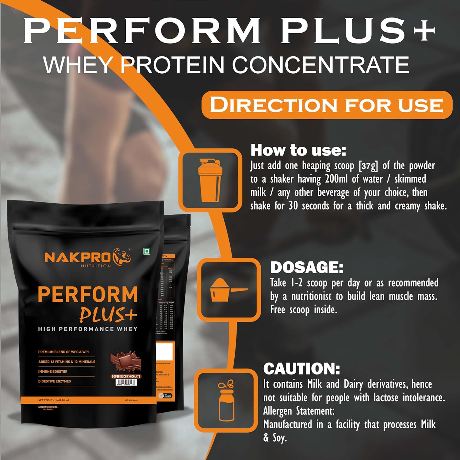 NO ADDED JUNK: PERFORM PLUS+ Whey Protein for beginners from NAKPRO doesn’t contain any added sugar or trans-fat. PERFORM PLUS+ Whey Protein is the primary source of protein in the product.