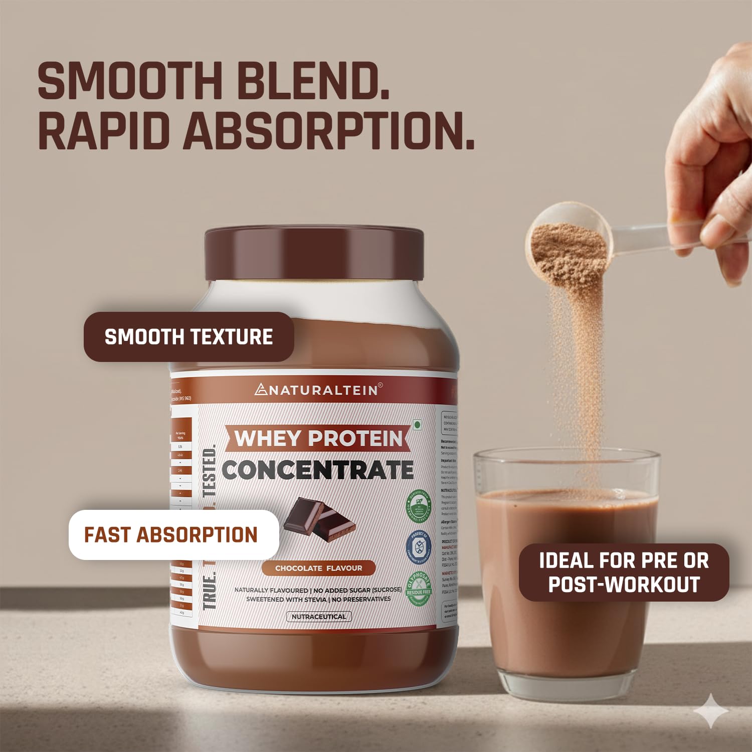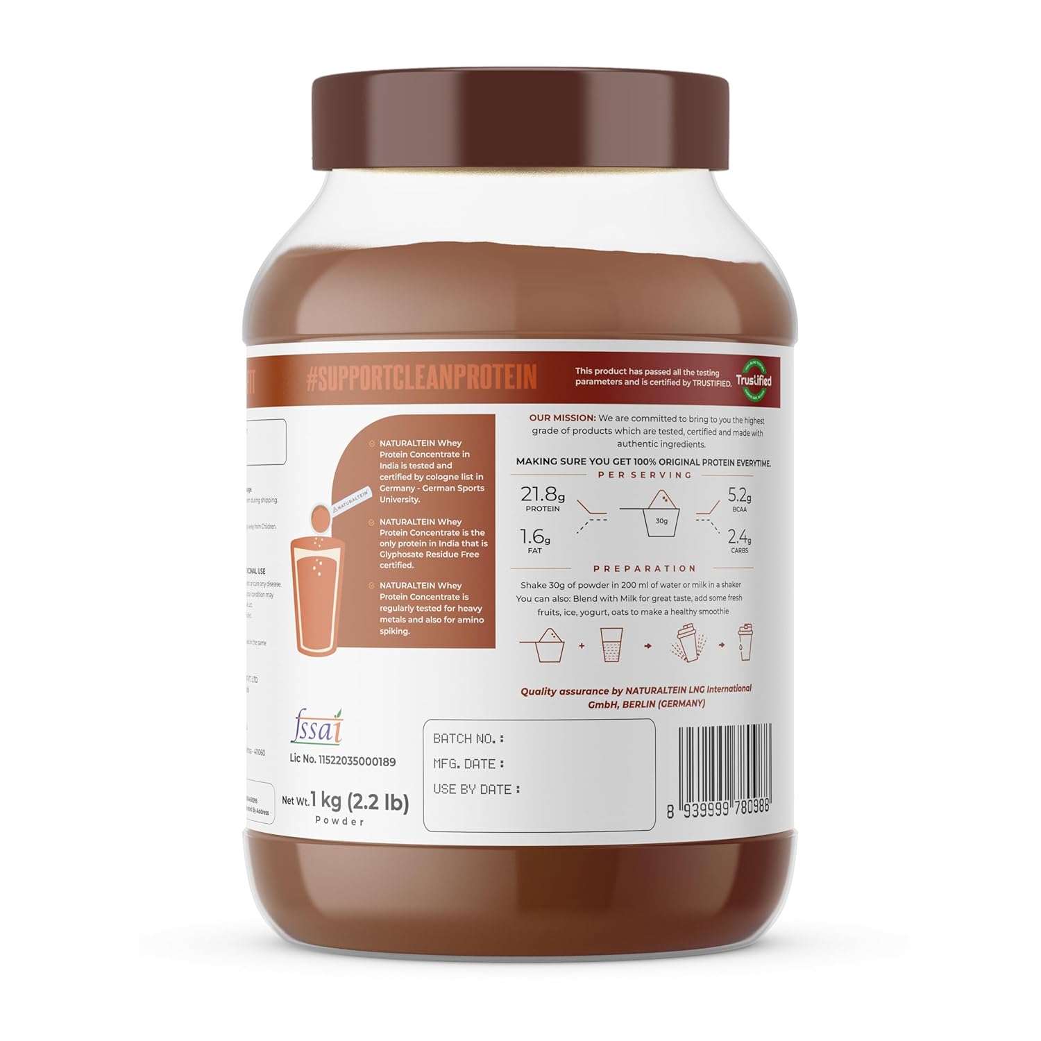 I’ve been using NATURALTEIN Natural Whey Protein Concentrate Chocolate for several weeks and really like it. The chocolate flavor is natural and too good and it blends smoothly in both water and milk Each 30 g scoop gives about 21.6 g protein and only around 115 kcal .It’s easy on my stomach—with no bloating, even after workouts . I’ve noticed better recovery and more energy during gym sessions. It’s made with clean, non‑GMO ingredients and real chocolate, with no artificial sweeteners . I plan to buy it again!