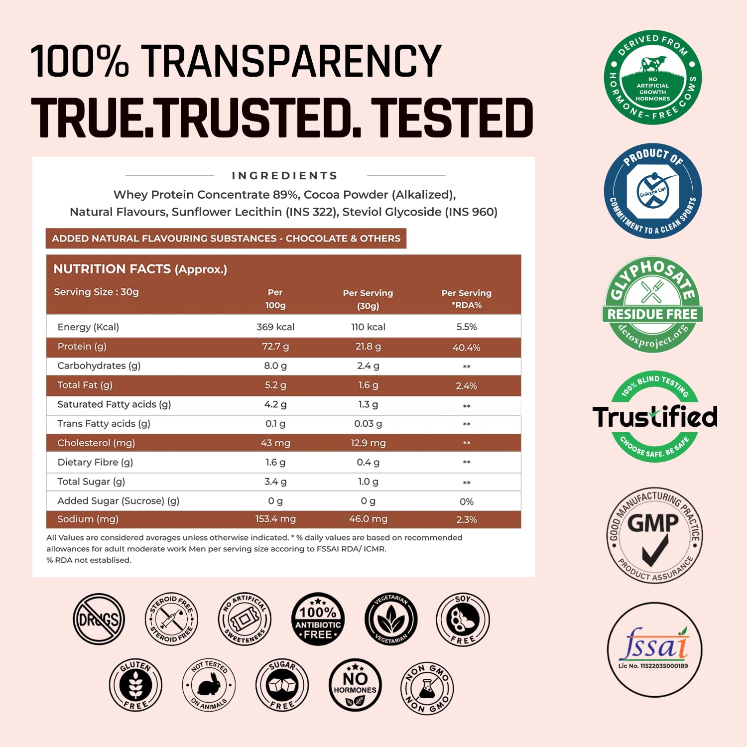 No Adulteration or Additives: Pure whey protein concentrate with transparent formulation — nothing unnecessary added.