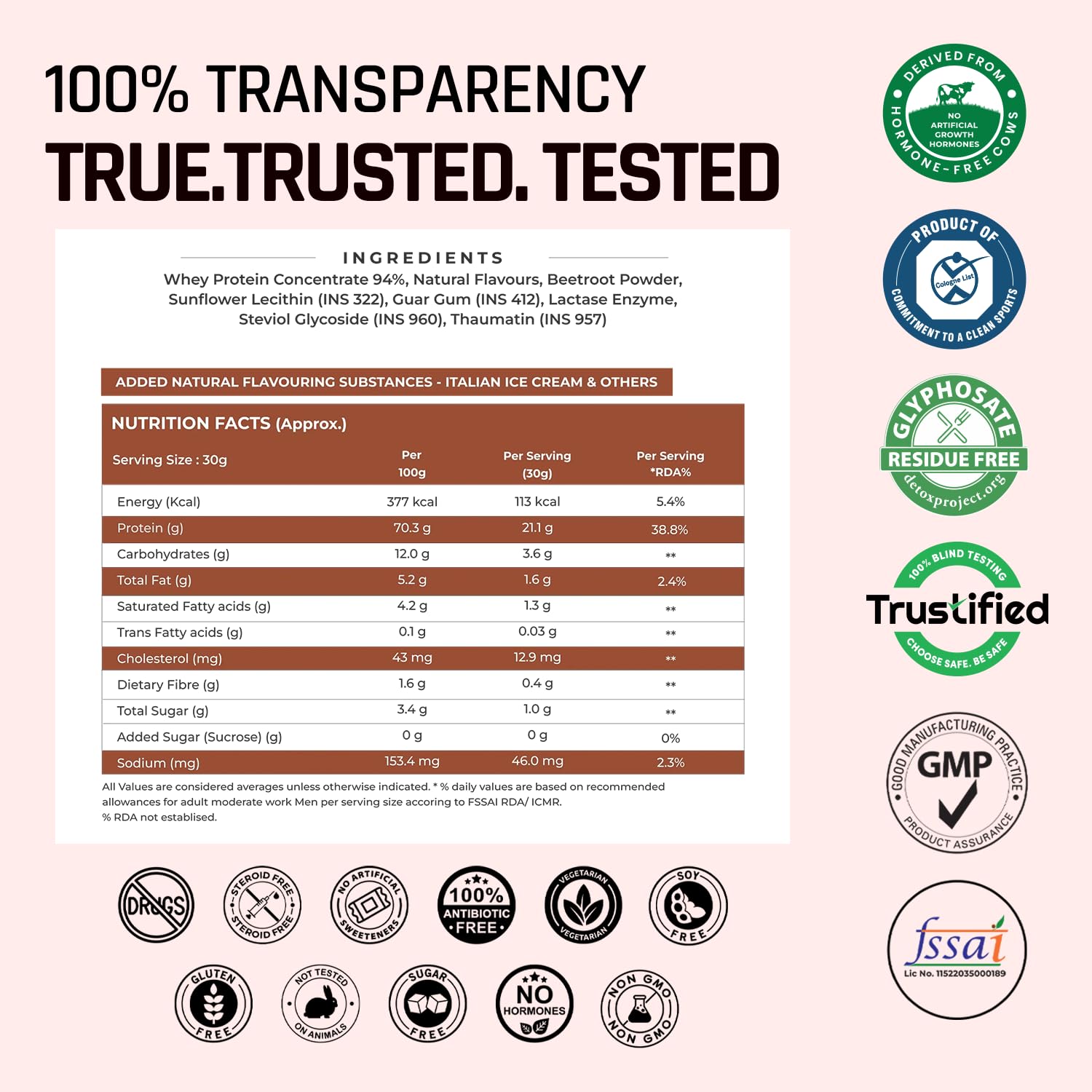 21.1 g Protein per Serving: Supports lean muscle growth, strength, and recovery with naturally sourced whey concentrate.