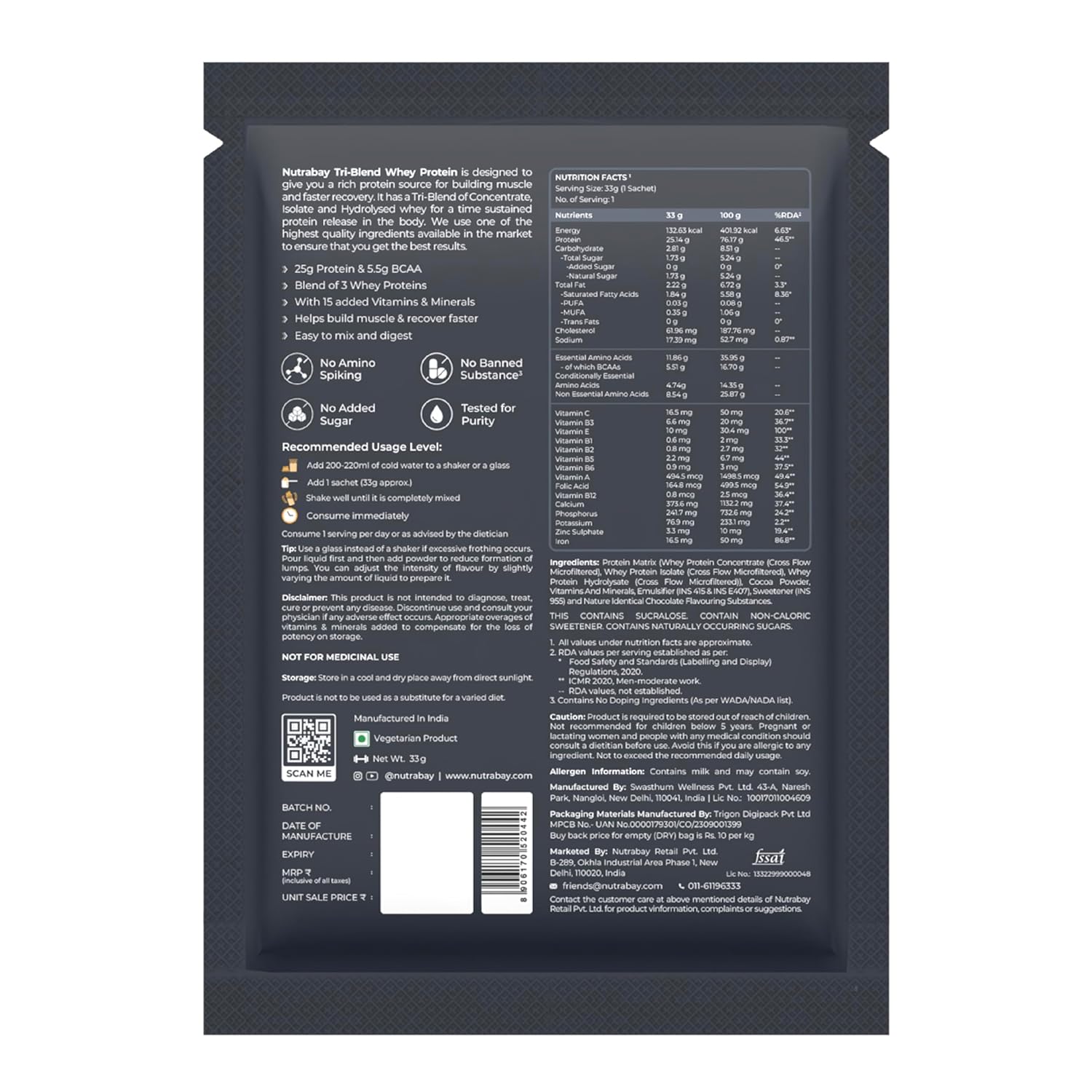 Generic Name : Nutrabay Gold Tri Blend Whey Protein Powder – 33gm