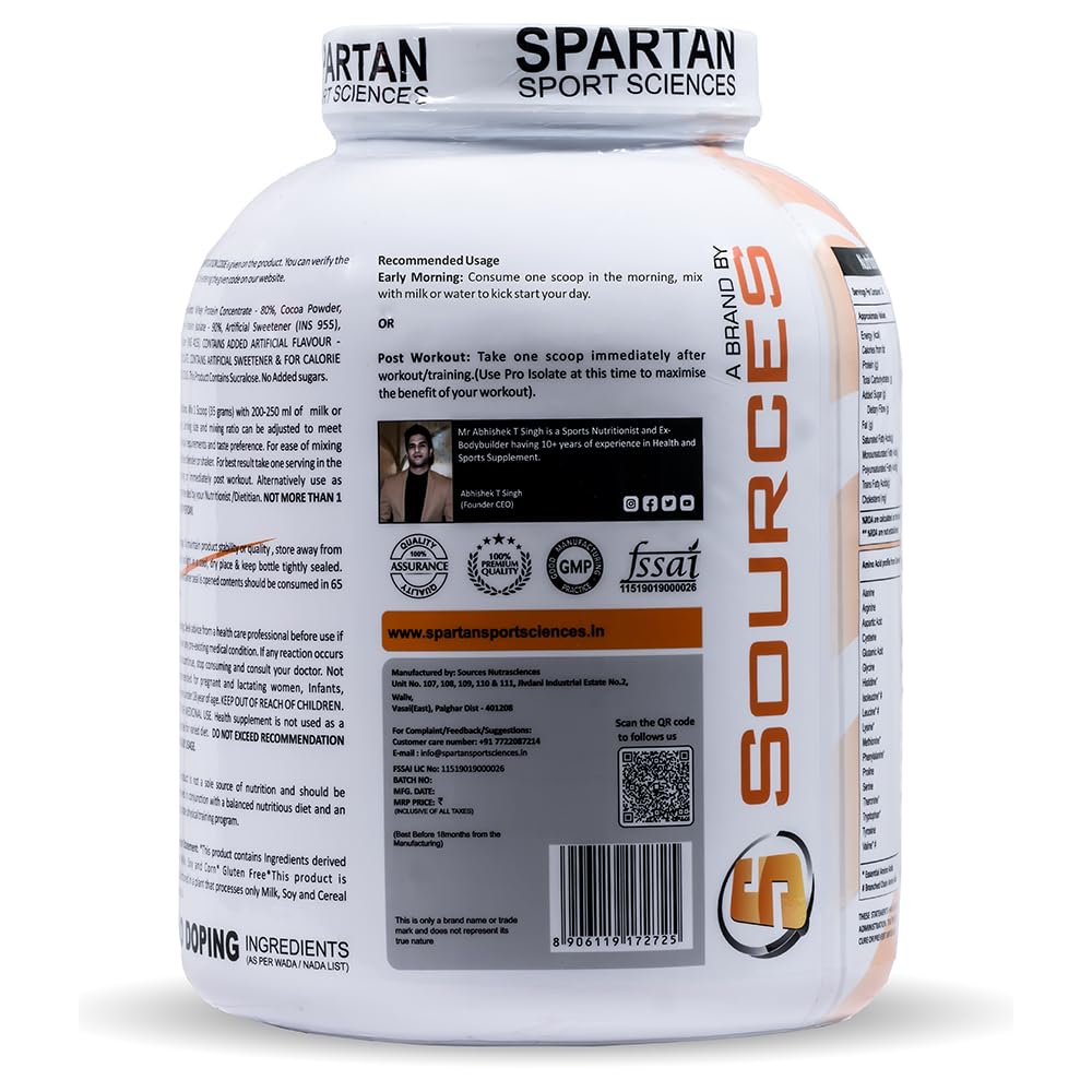 Spartan Sport Sciences Pro Isolate Whey Protein, a premium whey protein isolate powder designed for athletes, bodybuilders, and fitness enthusiasts. Each serving delivers 28g of pure protein, 13g of essential amino acids (EAAs), and 6g of branched-chain amino acids (BCAAs) to promote muscle growth, enhance recovery, and improve endurance.