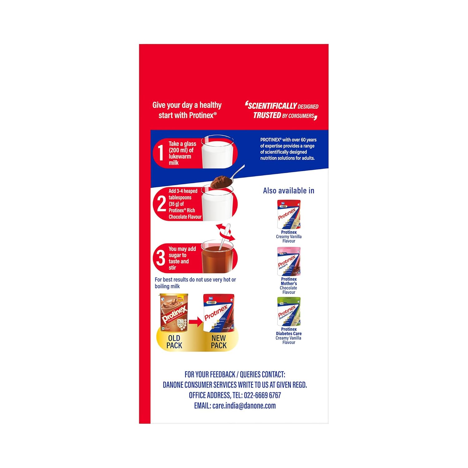Protinex Tasty Chocolate meets 40% daily protein is when prepared with 200ml milk for strong muscles