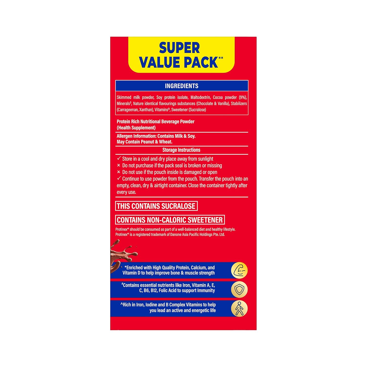 Protinex Rich Chocolate comes with high protein (34g for every 100g) Protein helps in building strong muscles and bones.