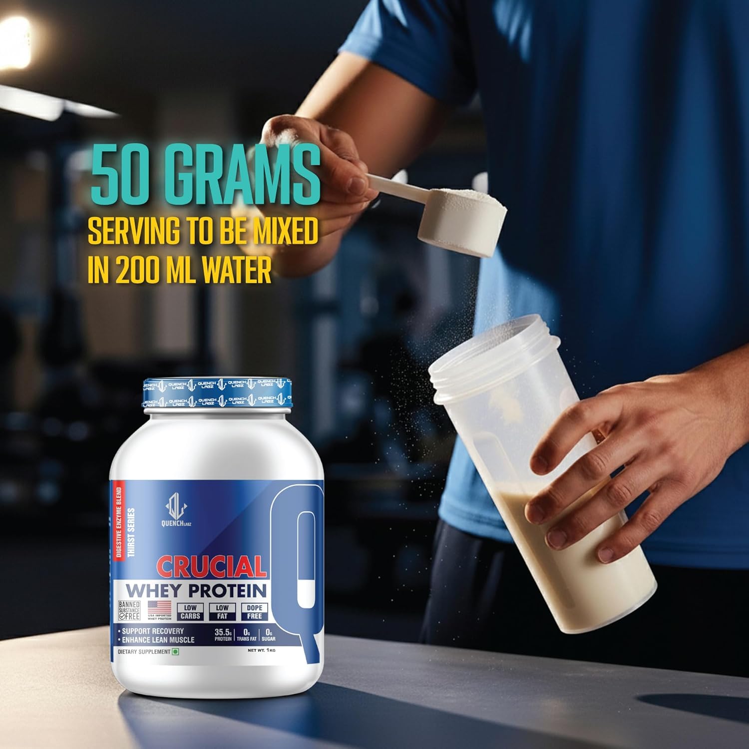 35.5g Protein per Serving: Crucial Whey Protein offers 35.5g of premium quality protein per scoop to help build lean muscle mass and promote recovery after workouts