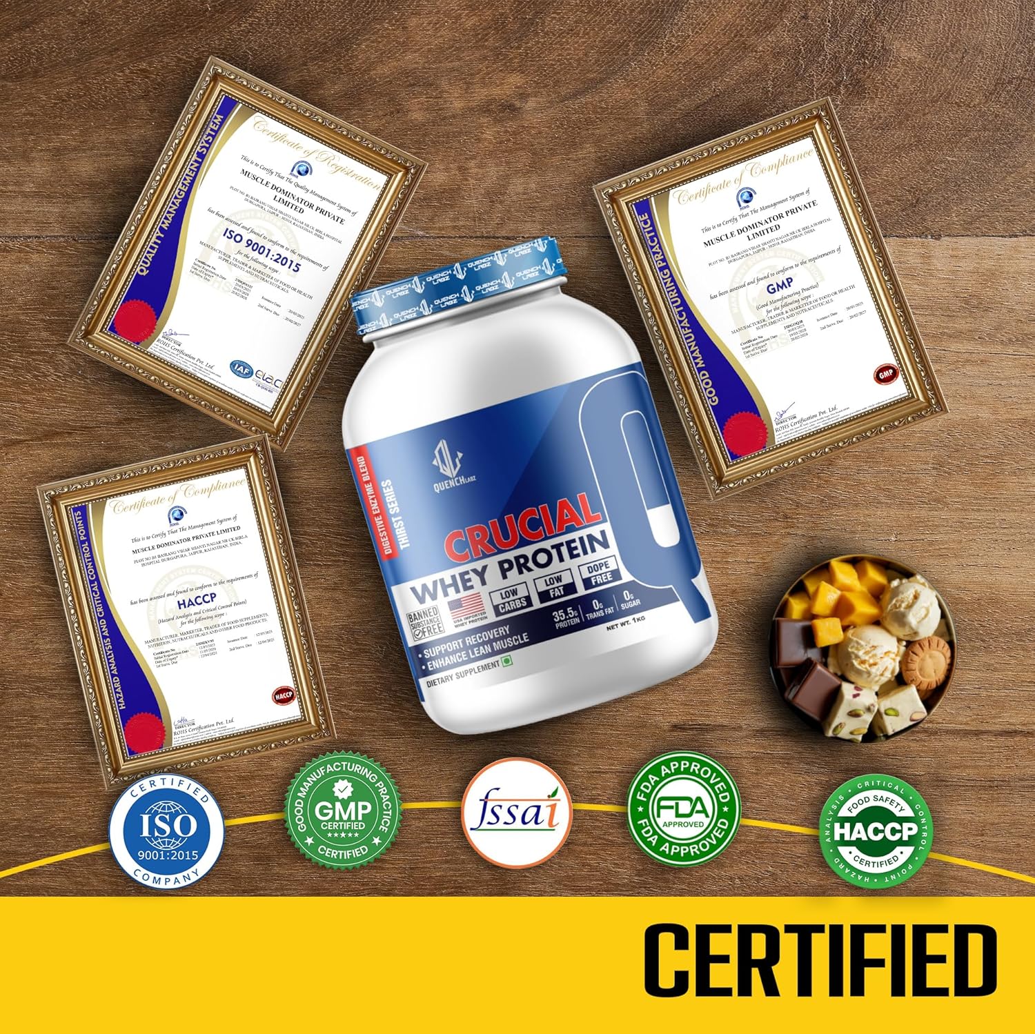 Certified & Trusted: Manufactured in FDA-approved facilities with certifications like GMP, FSSAI, ISO 9001:2015, and HACCP to ensure the highest safety standards.