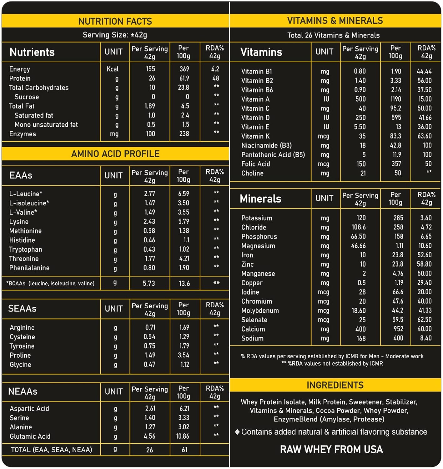 DIGESTIVE ENZYMES – Each serving of PowerLift Super isolate contains 100mg of digestive enzymes. Helps in easy absorption of protein.
