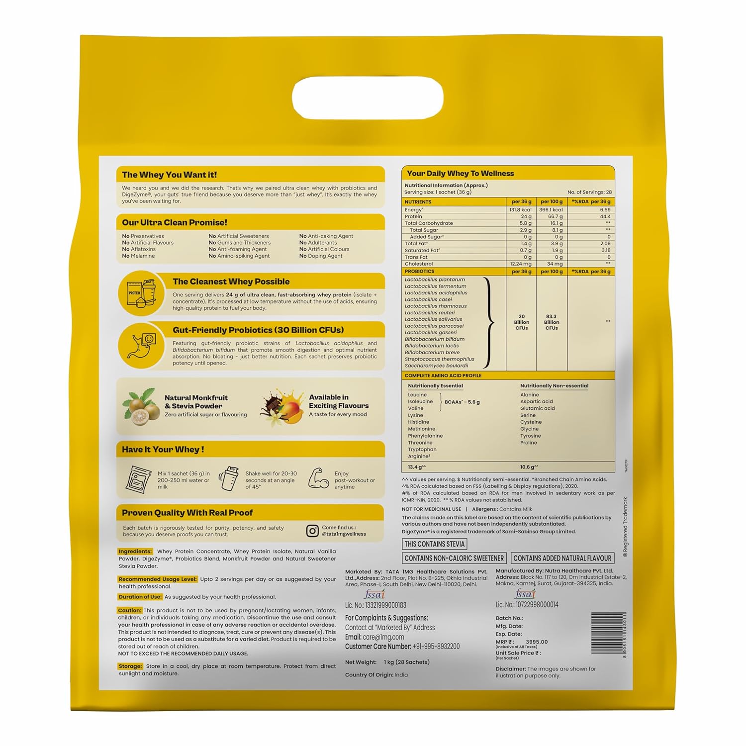 Clean, Gut-Friendly & Digestible: Light and easy on the gut, Tata 1mg Ultra Clean Whey Protein is the most easily digestible protein, formulated to fit seamlessly into your routine.