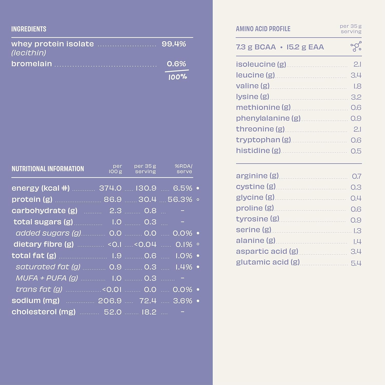 Made with: Whey isolate and bromelain. That’s all!