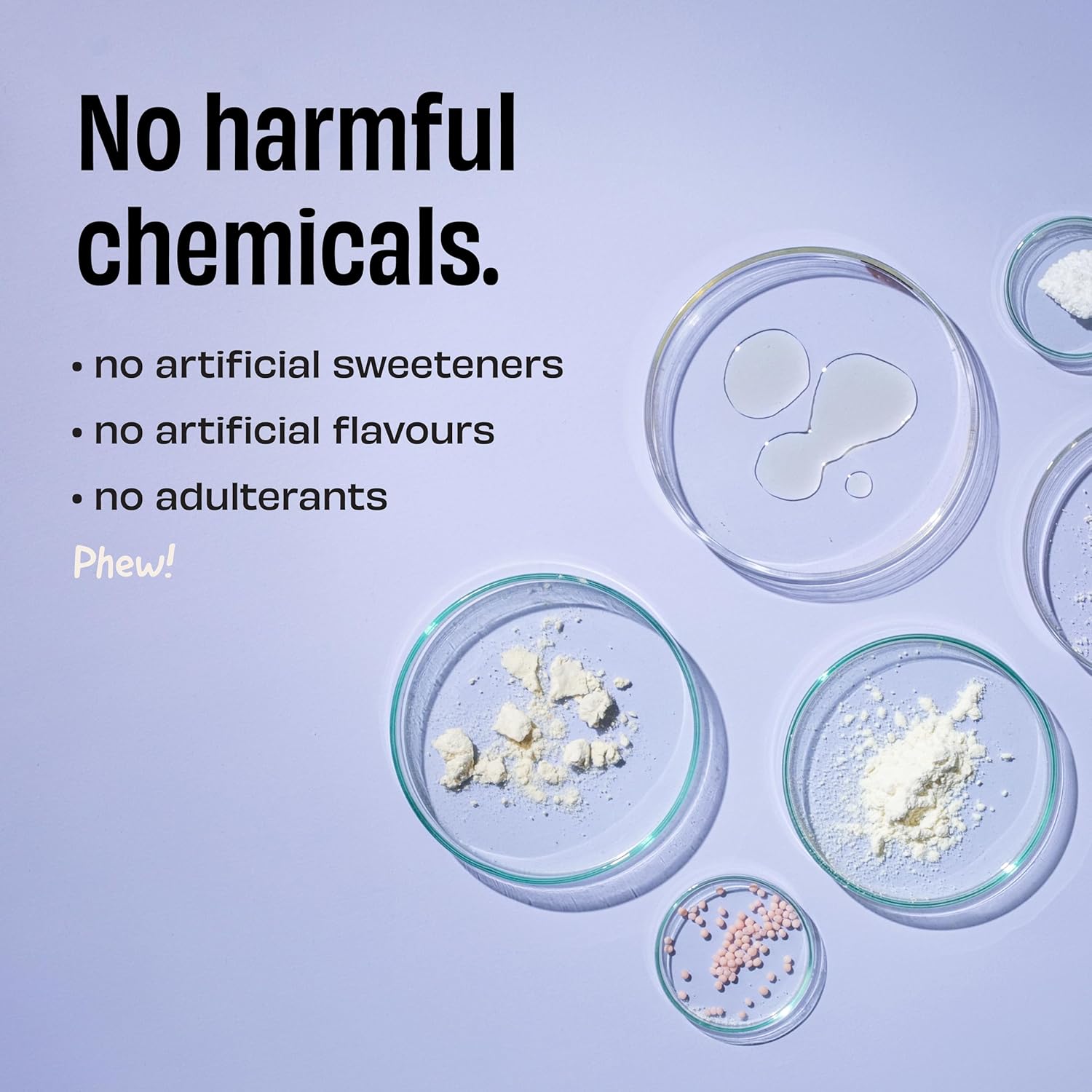 Pure whey protein isolate (90% protein concentration): Unflavoured (no added flavour). No metallic aftertaste (no artificial sweetener). Not thick & heavy (no xanthan gum). Just real food (no harmful chemicals). So…you get pure whey protein isolate that you can use the whey you like!
