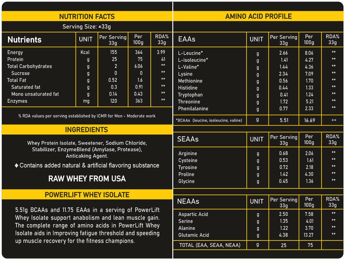 DIGESTIVE ENZYMES – Each serving of PowerLift Whey isolate contains 120mg of digestive enzymes. Helps in easy absorption of protein.